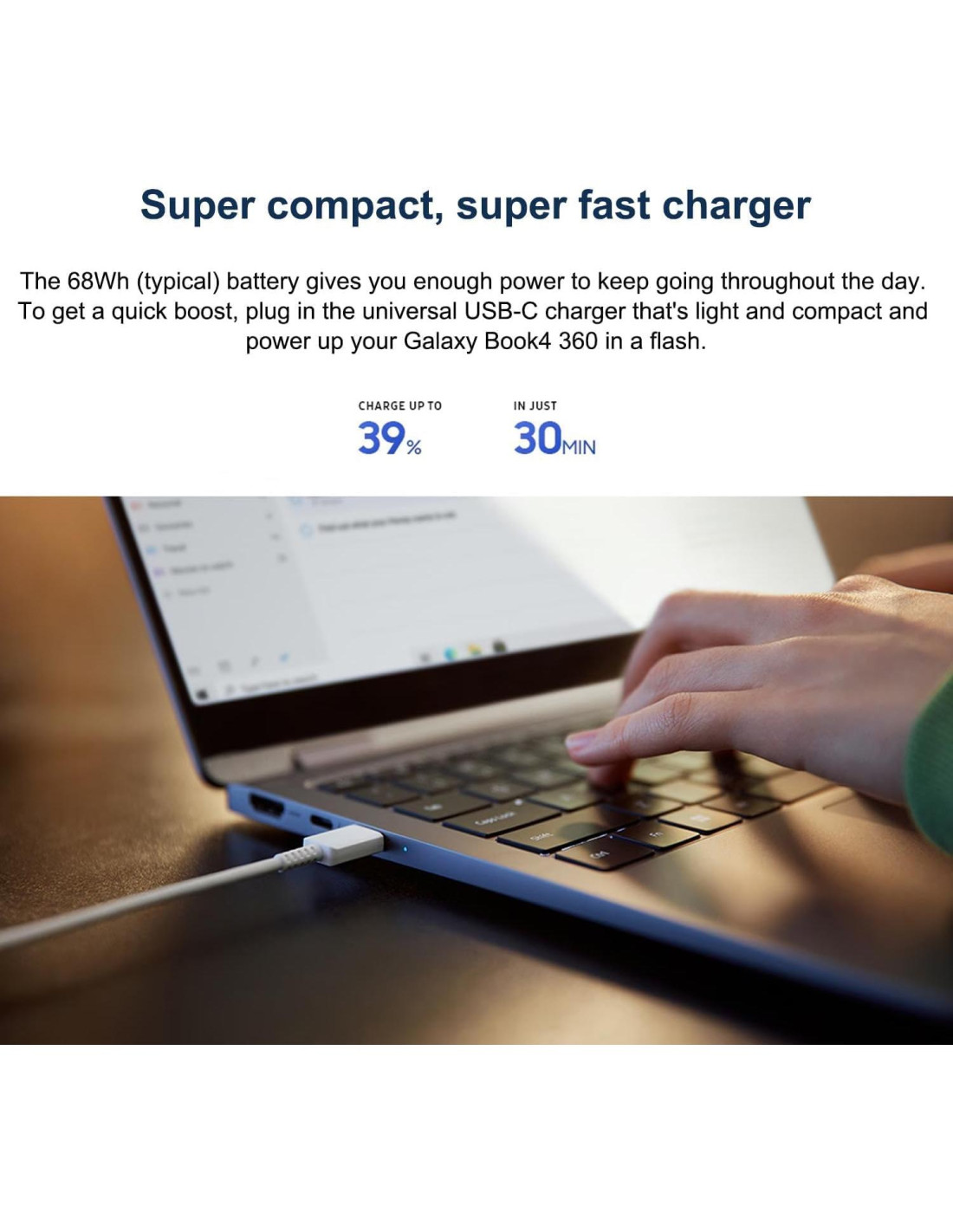 - Diseño Convertible X360 2EN1 -- Experimenta la máxima flexibilidad con Galaxy Book4 360, modo laptop para tareas diarias, modo tienda para compartir, modo soporte para entretenimiento y modo tableta para uso interactivo y portátil. Con un peso de solo 3.22lb (1.46 kg) y solo 0.54" (1.37 cm) de grosor, ofrece una portabilidad excepcional.