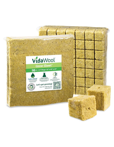 - DISEÑADO CONSCIENTEMENTE: La hoja VidaWool Grow está diseñada con tecnología Hydro-Xtend para la absorción de agua y nutrientes. Con una capacidad de retención de agua del 85-95%, y un tiempo de humectación de menos de 15 segundos, cada tapón está diseñado para un rendimiento consistente en sistemas de cultivo hidropónicos a pequeña escala y comerciales.