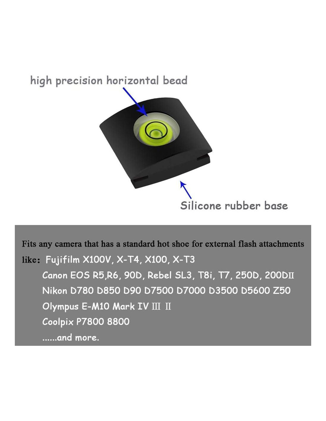 - [Cubierta de zapata fría] Nivel de zapata fría universal, diseñado para cualquier cámara que tenga una zapata fría estándar para accesorios de flash externo. Ayuda a mantener la cámara NIVEL, el nivel de burbuja te ayudará a tener una medición horizontal precisa. El diseño circular es más pequeño, ligero y conveniente. Protege tu zapata fría de doblarse o dañarse cuando no tienes un flash, micrófono o luz LED adjunta, ayuda a mantener la humedad y el polvo alejados de la zapata fría.