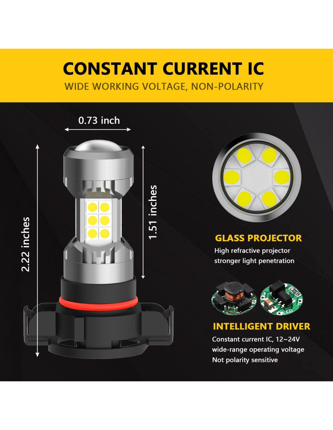 - (Paquete de 2) Brillo: 1600LM por bombilla de luz de niebla LED PSX24W/2504, 3200LM por juego; Corriente: 600Ma; Potencia: 7.2W; Voltaje: 12V-24V; Color: 6000K blanco xenón