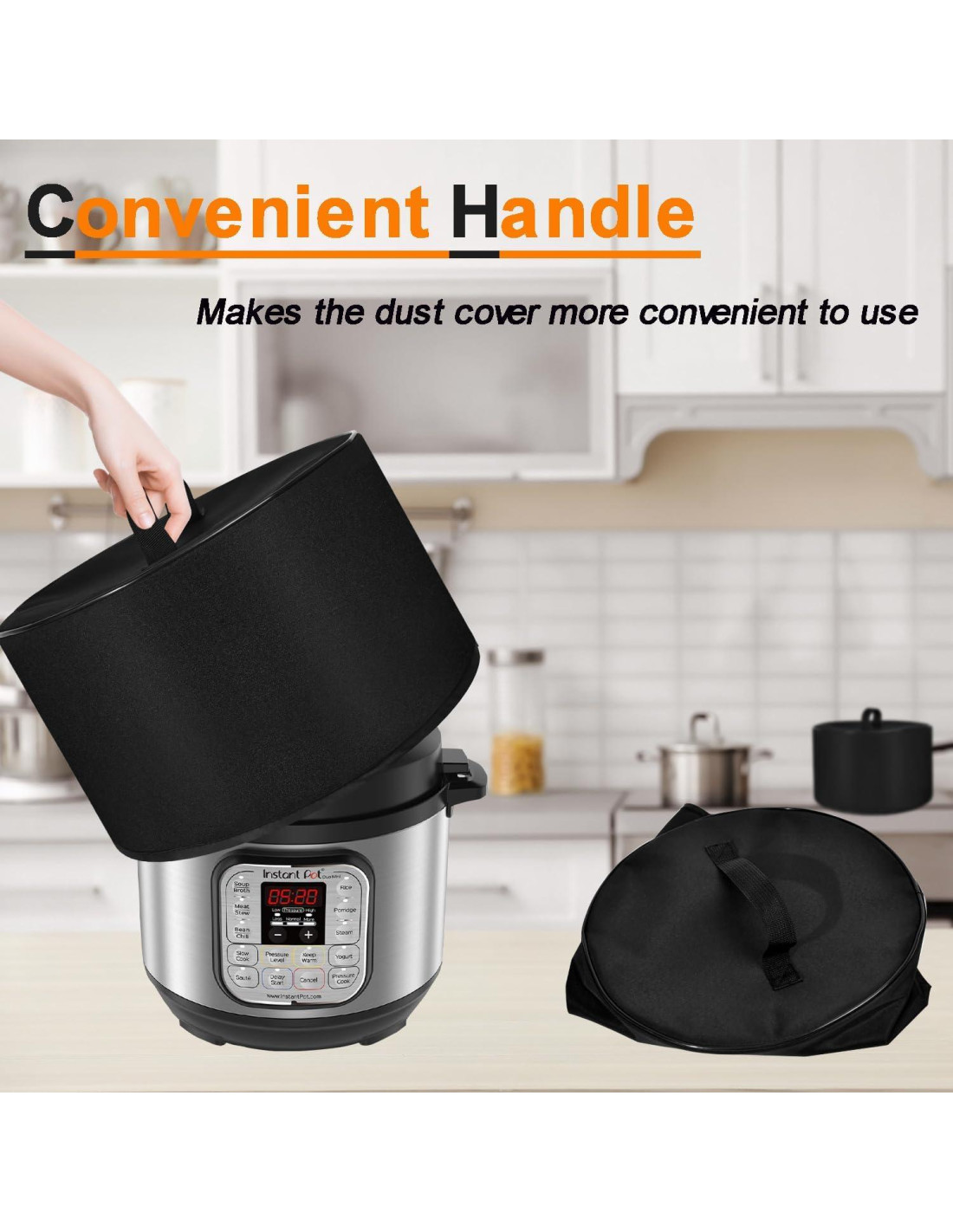 - [Cubierta a Prueba de Polvo Conveniente] : La cubierta de olla a presión eléctrica está abierta en la parte inferior y tiene un mango conveniente en la parte superior de la cubierta (costura encriptada), lo que facilita la instalación simplemente levantando la cubierta ligera y de una sola pieza y deslizándola sobre la parte superior de la olla.