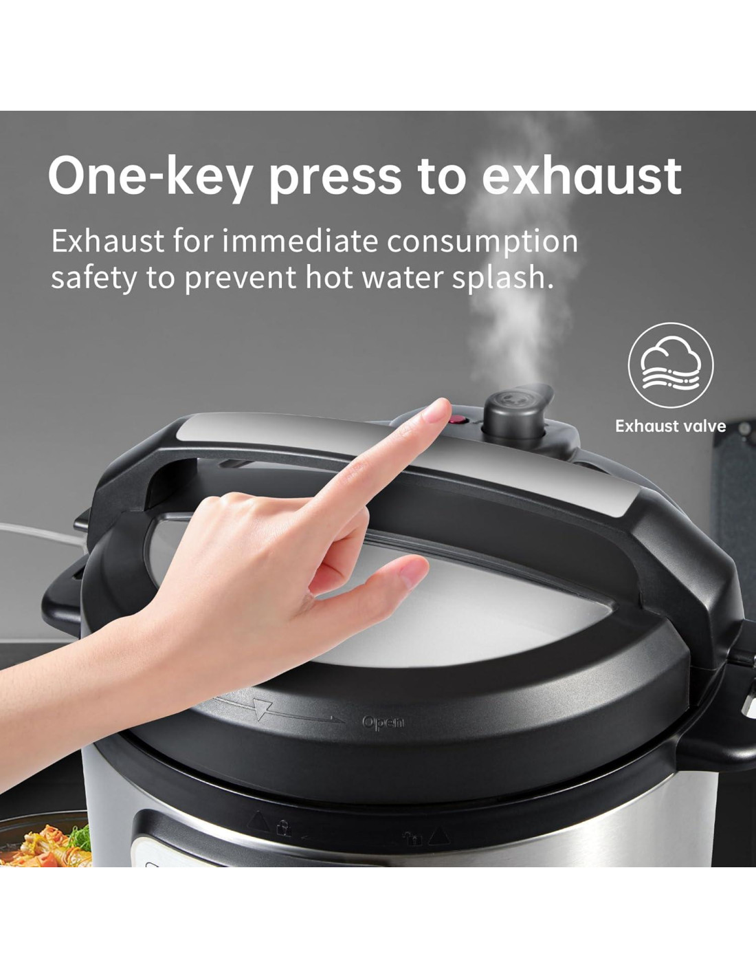 - [Cocción RÁPIDA y FÁCIL]: ¿Tienes problemas para levantarte de la cama por la mañana y no quieres cocinar? No te preocupes, en comparación con los métodos de cocción tradicionales, la olla de presión eléctrica acelera el proceso de cocción en un 70%. Puedes disfrutar de comidas deliciosas en solo unos minutos o la mitad del tiempo de cocción habitual. El diseño del programa de cocción con un solo toque te ahorra tiempo, ¡realmente adecuado para familias americanas!