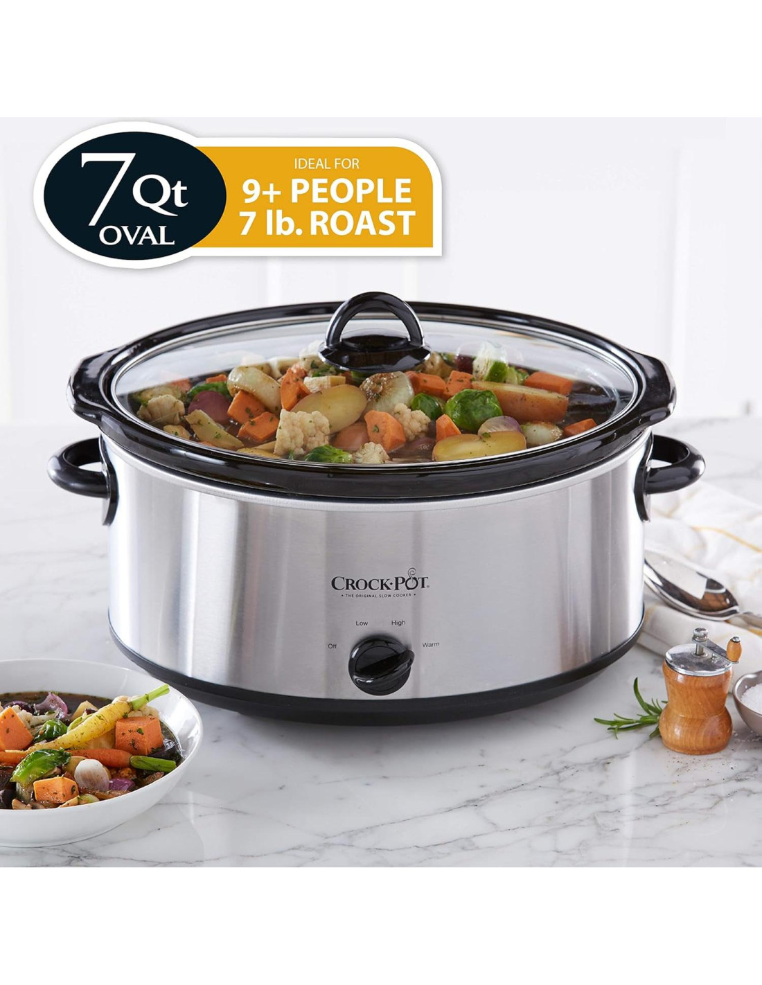 - olla de cocción lenta manual ovalada de 7 cuartos (6.63 litros) con configuraciones altas y bajas y configuración de mantener caliente para mantener la comida lista para servir (Crock-Pot).