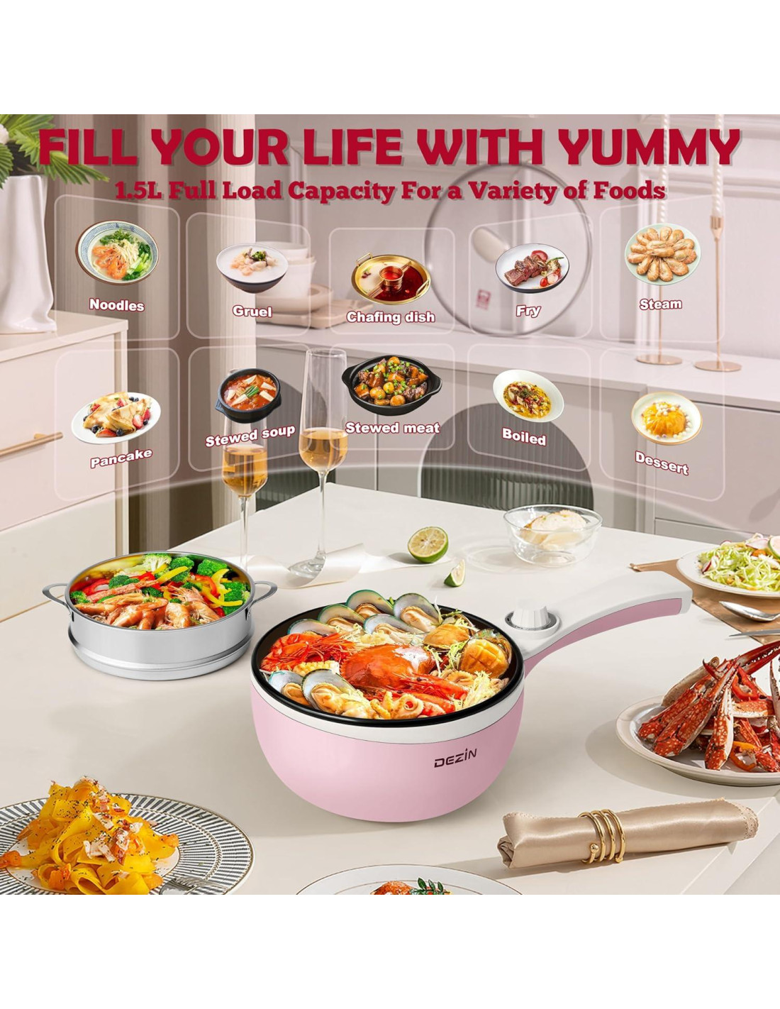 - Pequeña en almacenamiento - Este cocinero eléctrico Dezin, con una capacidad de 1.5L (representando su capacidad máxima cuando la olla está cubierta con la tapa), es compacto en tamaño y fácil de almacenar. Es particularmente adecuado para personas que viven en dormitorios sin estufas o aquellos que prefieren no depender de comida para llevar. Además, si estás planeando un viaje o un picnic, ¡esta olla portátil será tu mejor compañera en movimiento!