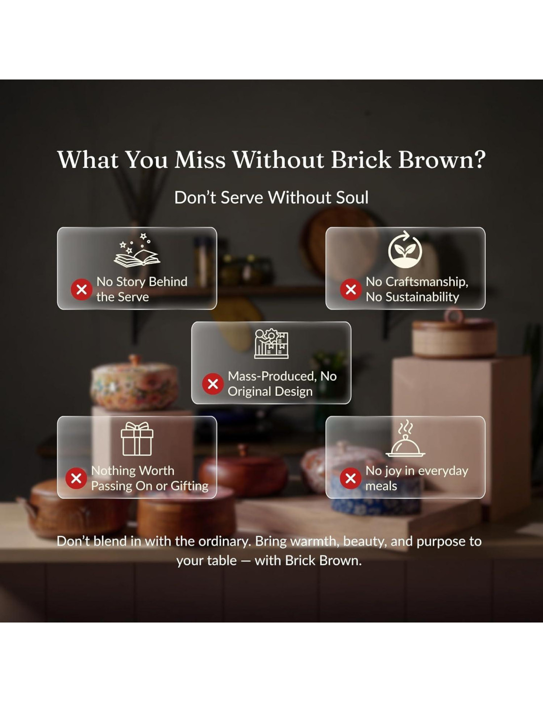 Creando una elegancia atemporal con lujo sostenible, Brick Brown ofrece exquisita decoración y muebles para el hogar, reflejando una mezcla de arte y funcionalidad. Experimenta un viaje de sofisticación y vida consciente con nuestras creaciones únicas. Cada pieza de Brick Brown es un testimonio de una artesanía inigualable, arte ecológico y rica herencia cultural. Talladas a mano por artesanos calificados, nuestras creaciones sostenibles ofrecen una mezcla de tradición e innovación. Ofrecemos piezas que no solo embellecen tu espacio, sino que también contribuyen a un planeta más saludable. Sí, Brick Brown proporciona calidad inigualable a precios imbatibles para sus compradores, utilizamos los mejores materiales en la industria, haciendo que nuestros productos sean duraderos y de larga duración.