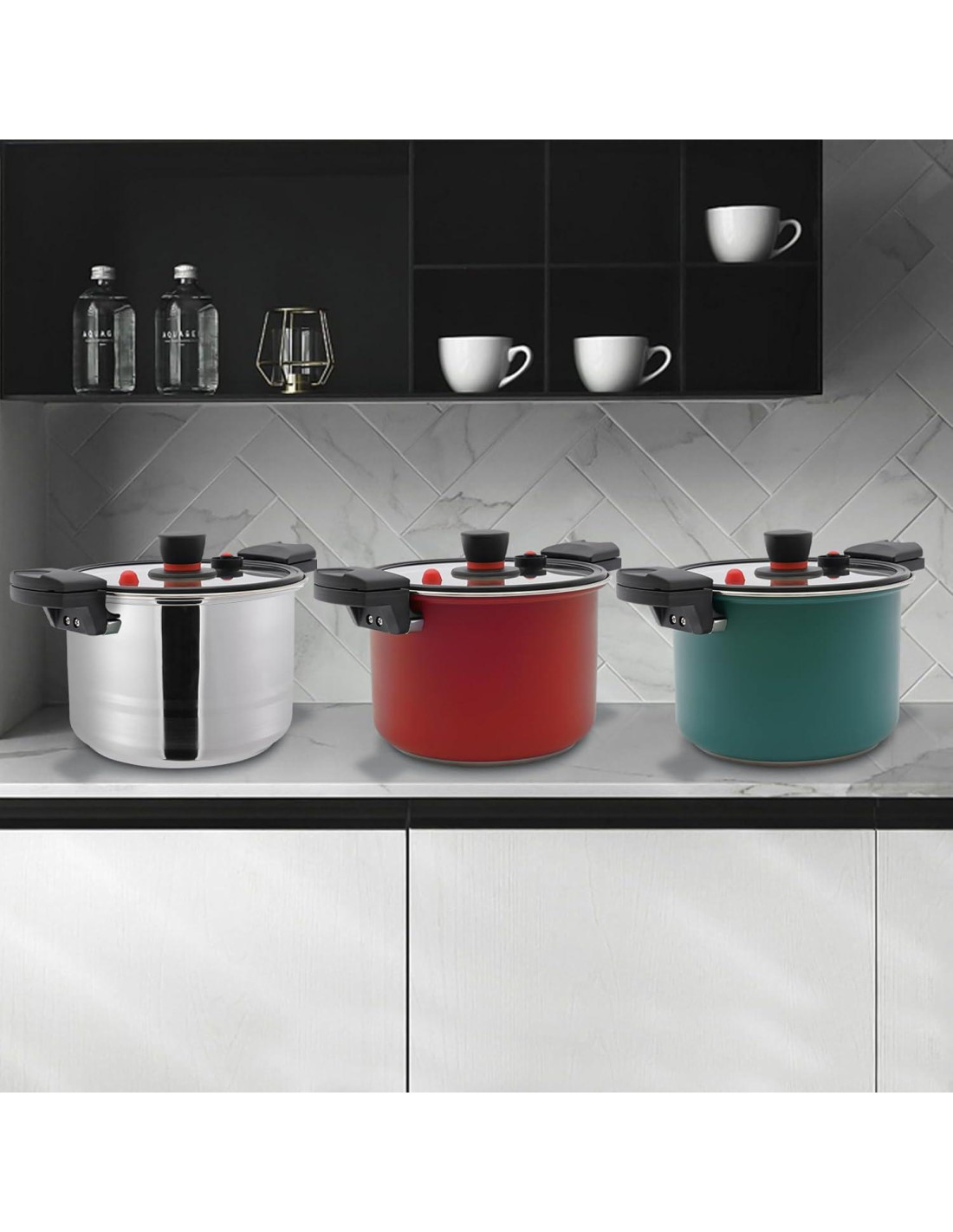 - [Robusto y Duradero] El producto está hecho de acero inoxidable 201 de alta calidad, vidrio y baquelita, utilizando tecnología de pintura en spray, lo que lo hace duradero, resistente a la corrosión y seguro de usar para satisfacer sus necesidades de cocción a largo plazo.