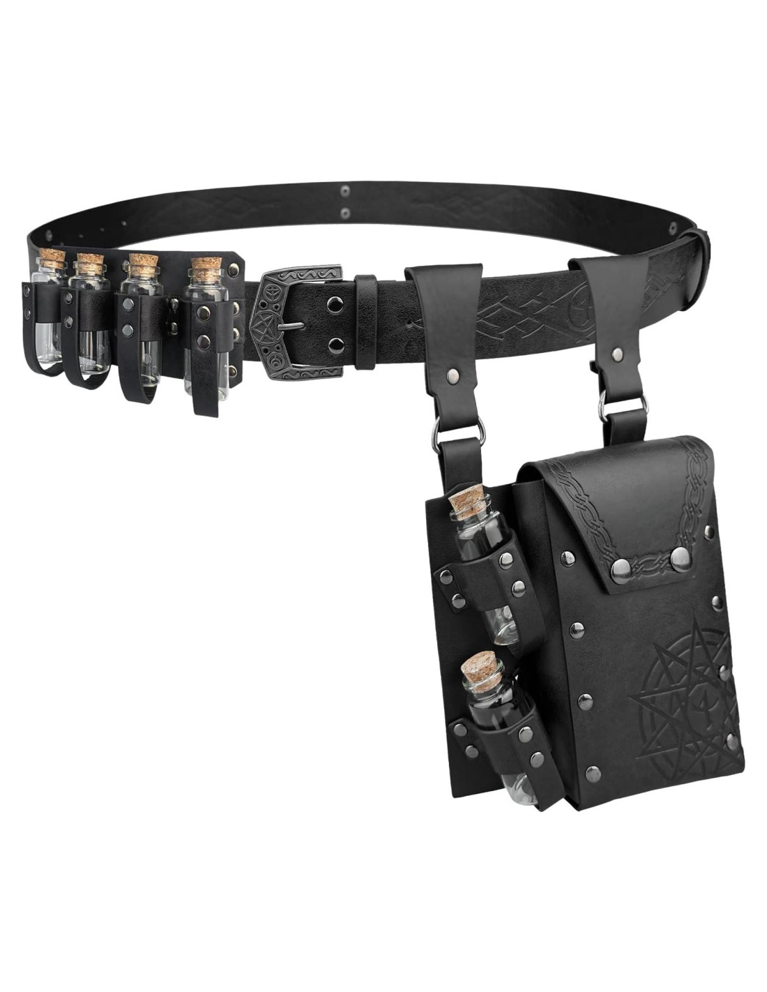 - Uso multifuncional para todas las ocasiones. Ya sea que asistas a una fiesta con temática vikinga, a una actuación teatral, o busques un uso diario que añada un sentido de aventura, este Conjunto de Cinturón de Alquimista y Bolsa de Botellas te servirá bien. Este conjunto de accesorios no es solo un complemento para tu atuendo, sino una declaración de gusto y nostalgia.