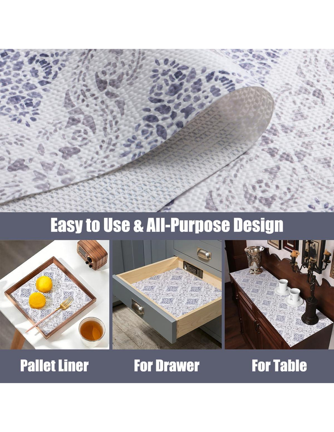 - Forro de cajón boho [TAMAÑO Y DISEÑO] 30cm x 300cm = 0.98ft x 9.84ft = 9.69sq.ft. El forro de gabinete Tatyanna está en forma de acuarela. Combina patrones de diferentes tonos de colores para crear una hermosa imagen. Un color que se encuentra entre el púrpura y el azul, único, elegante y retro.
