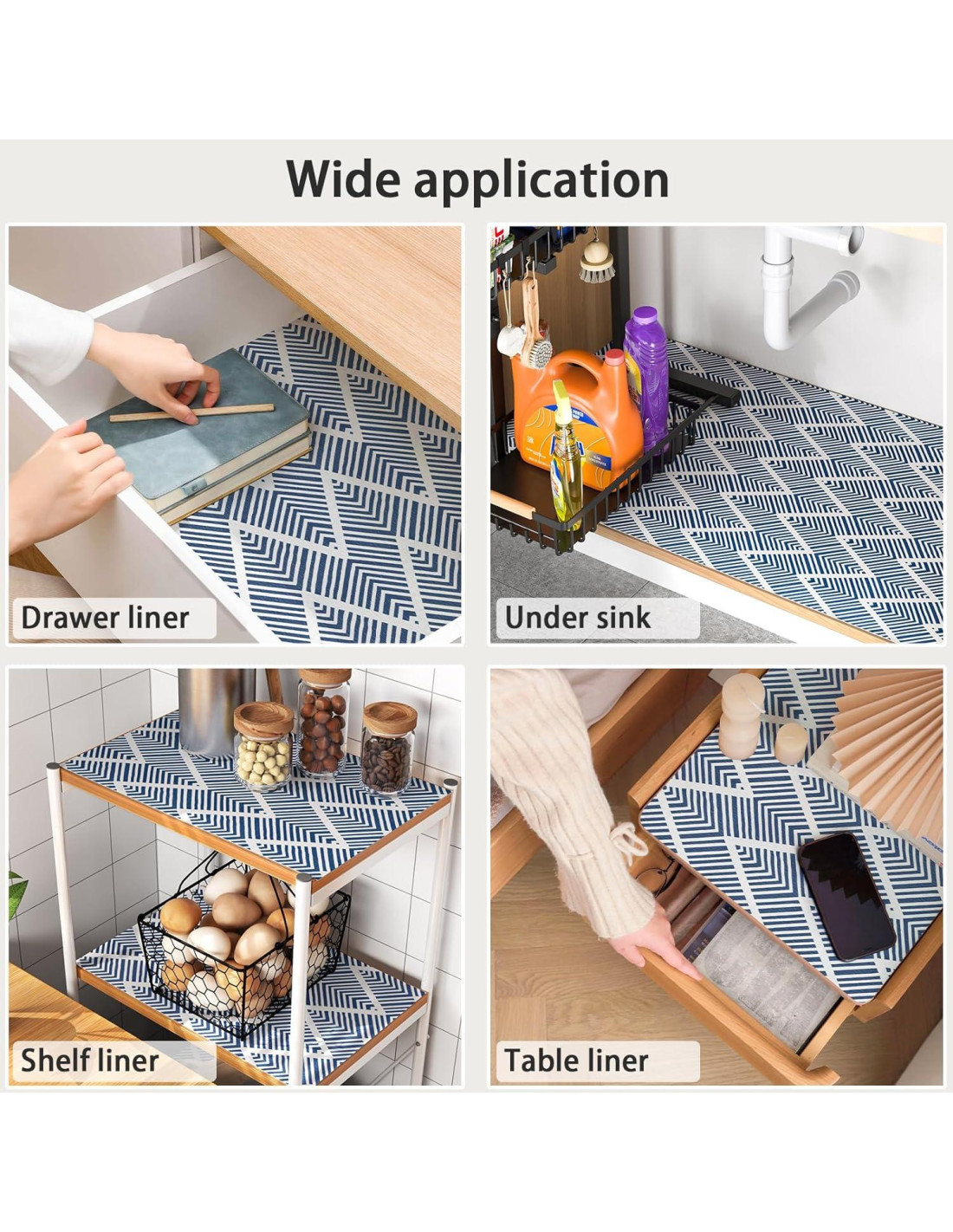 - APLICACIÓN MULTIFUNCIONAL: Nuestro forro de estante es adecuado para todo tipo de superficies de muebles y se puede usar como un cojín protector para cocina, gabinetes, cajones, escritorios, estanterías y muchos otros propósitos. Mejora tu espacio y clase sin esfuerzo