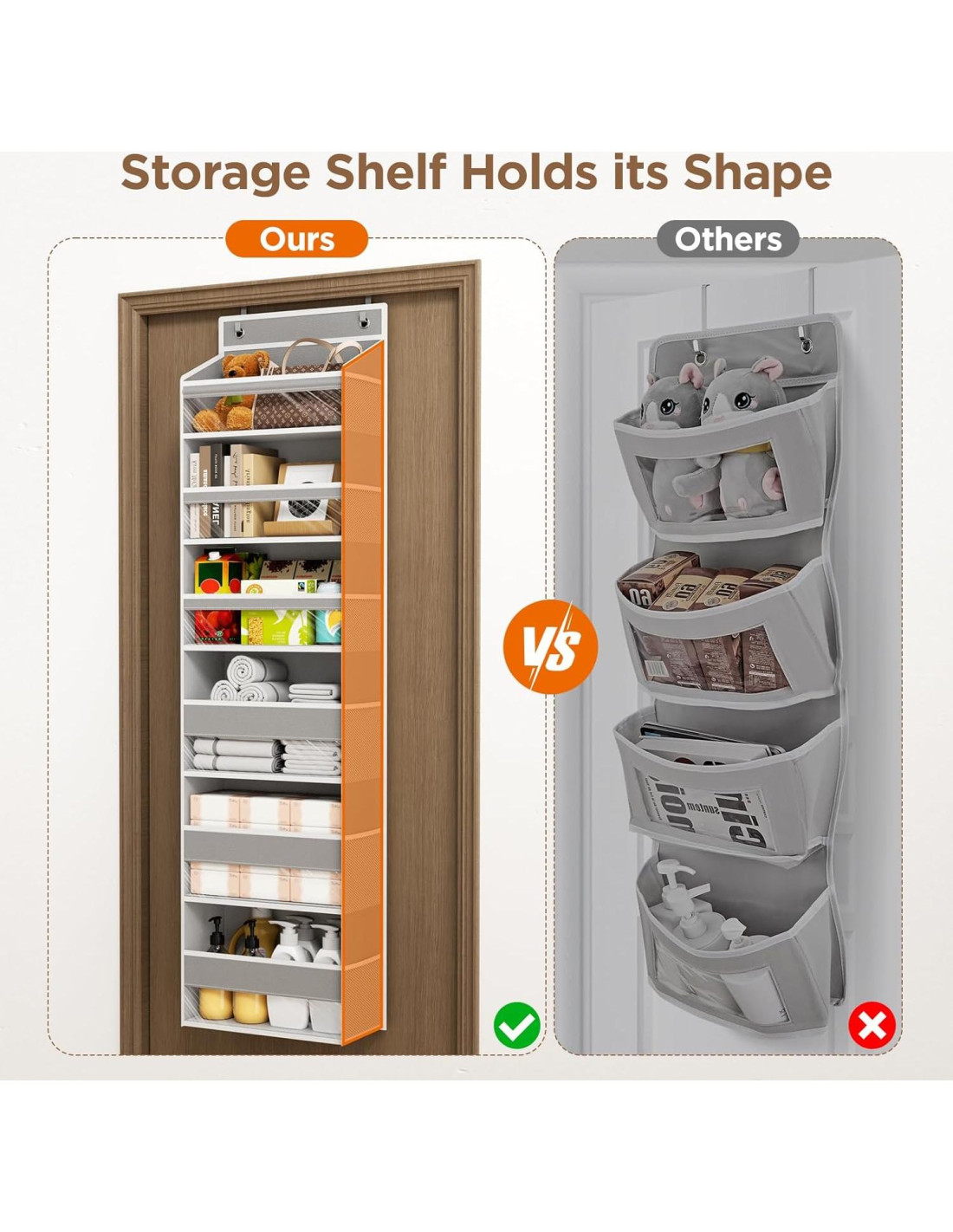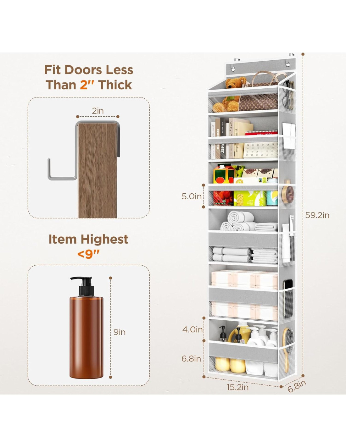 - Organizador Detrás de la Puerta Multifuncional: El estante y espacio de almacenamiento extra grande se puede usar como organizador de pañales, almacenamiento de hilo, organizador de toallas, organizador de ropa, organizador de juguetes. Es perfecto para el dormitorio, baño, cocina, despensa, habitación de recién nacidos o lavandería.