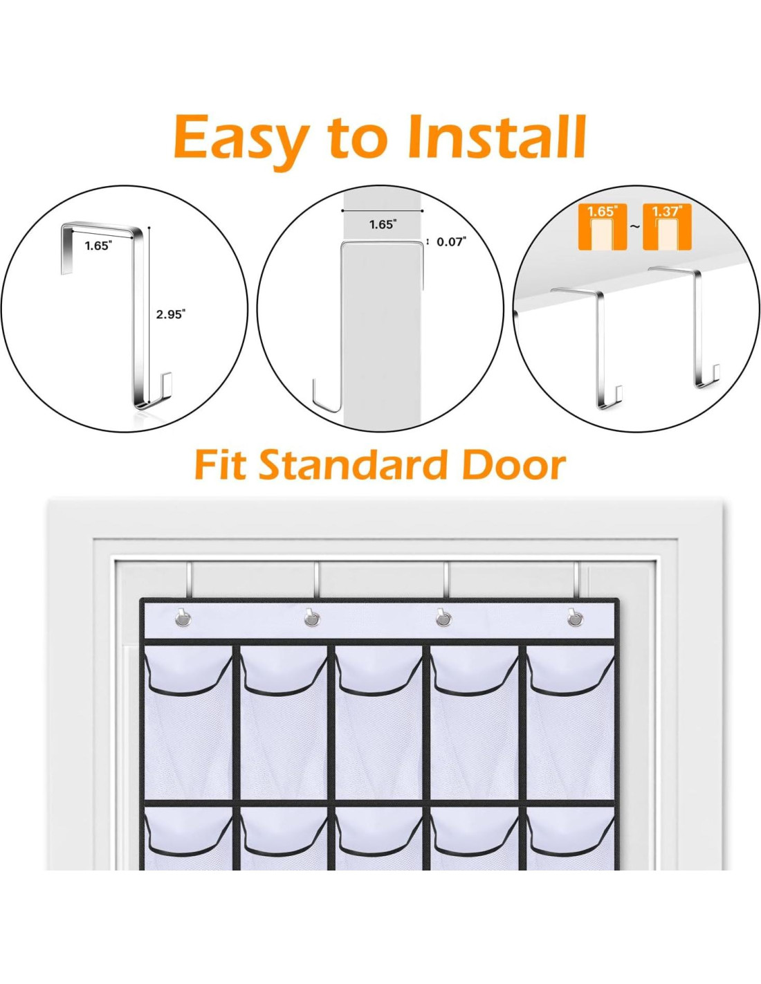 - [ Fácil de Instalar ] Los 4 ganchos de metal resistentes se pueden instalar bien en el espacio entre la puerta y el marco, lo suficientemente fuertes como para tolerar mucho peso de los zapatos que pongas. El gancho tiene un grosor de 0.18 cm, se ajusta a puertas estándar entre 3.48 cm a 4.19 cm