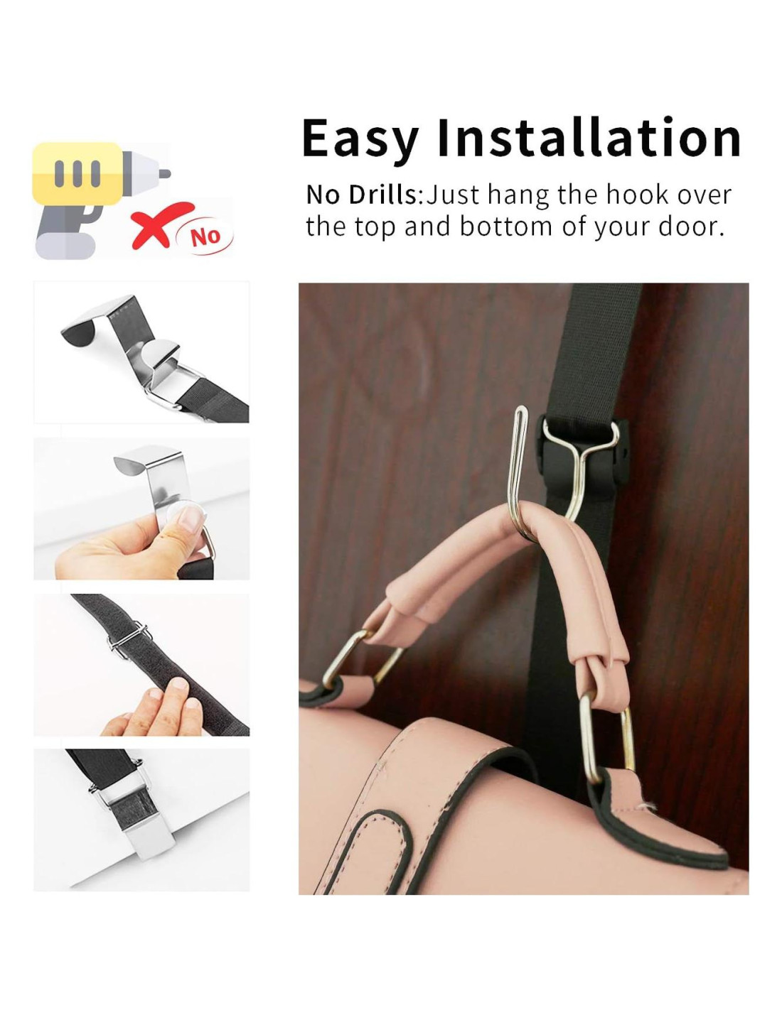 - Antideslizante y Hebilla de Plástico para Bloquear Cada Gancho: Correa de nylon de alta calidad y hebilla ajustable aseguran que no se deslice más tus cosas. Hemos probado, soporta 8 lb (3.63 kg) cada gancho, por favor, ten la seguridad de usar, nuestros productos son muy seguros y duraderos. Recordatorio: Las hebillas necesitan ser tiradas para bloquear. La cinta de nylon es más larga que la puerta, nuestra sugerencia es mantenerla, para que pueda ser utilizada en otras puertas de diferentes alturas, si aún piensas que la cinta es demasiado larga para tus necesidades, puedes cortar el exceso de cinta.