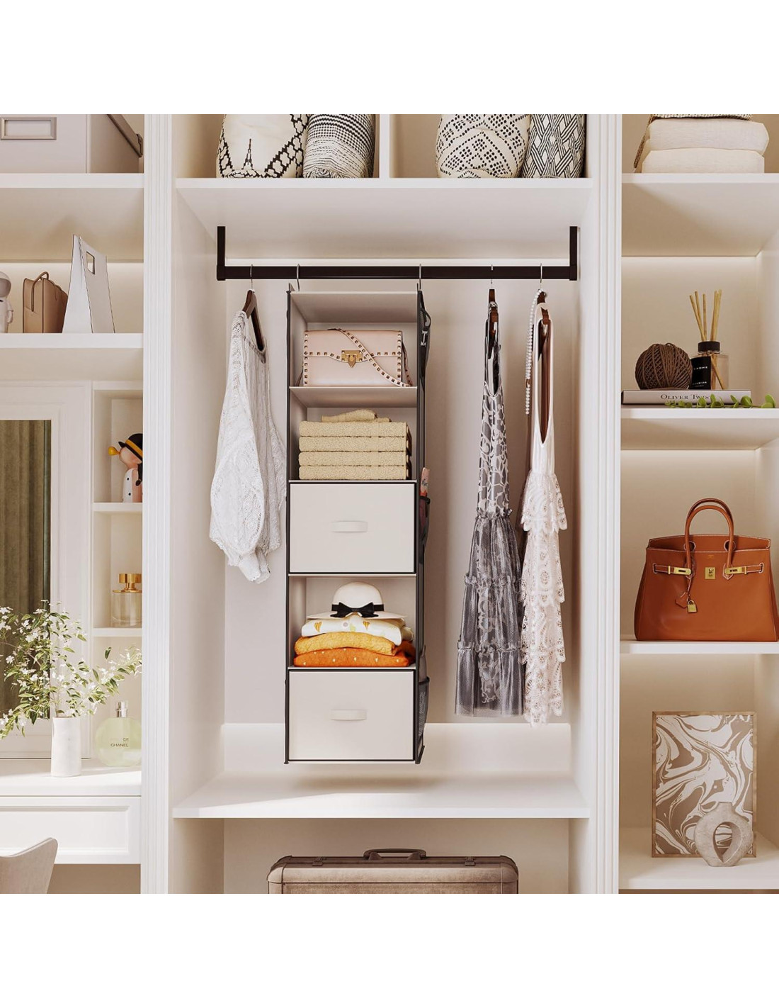 - [Ahorro de Espacio] Con este organizador de closet colgante, puedes hacer pleno uso de tu espacio de almacenamiento. Puedes alcanzar fácilmente tus bolsas, sombreros, ropa, calcetines, ropa interior y otros artículos, manteniéndolos ordenados y accesibles.