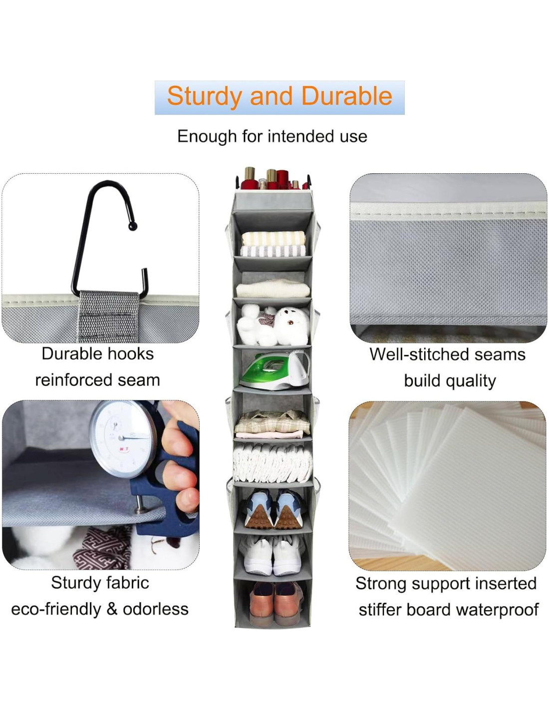 - [Duradero y Resistente] Los estantes de zapatos colgantes de 10 secciones de Roomtalk están diseñados para ser más duraderos que otros, vienen con un sistema de 2 ganchos estables para colgar pesos de aproximadamente 22 libras (9.98 kg) perfectamente, tela de alta resistencia ecológica, transpirable, sin olor, cubierta insertada con un fondo más rígido que brinda un fuerte soporte en cada cubículo sin flacidez o inclinación.