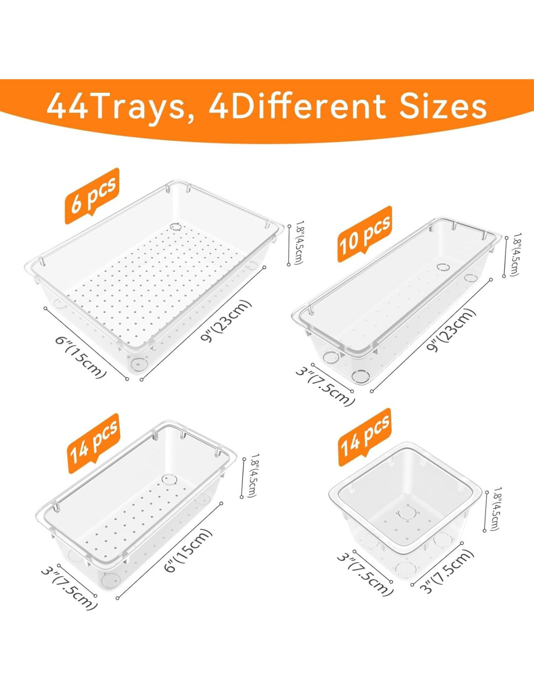 - 4 Combinaciones Diferentes de Tamaños: El organizador de gabinete incluye 44 bins de almacenamiento de 4 tamaños diferentes; incluyendo: 22.86 x 15.24 x 4.57 cm (6 pcs), 22.86 x 7.62 x 4.57 cm (10 pcs), 15.24 x 7.62 x 4.57 cm (14 pcs), 7.62 x 7.62 x 4.57 cm (14 pcs)