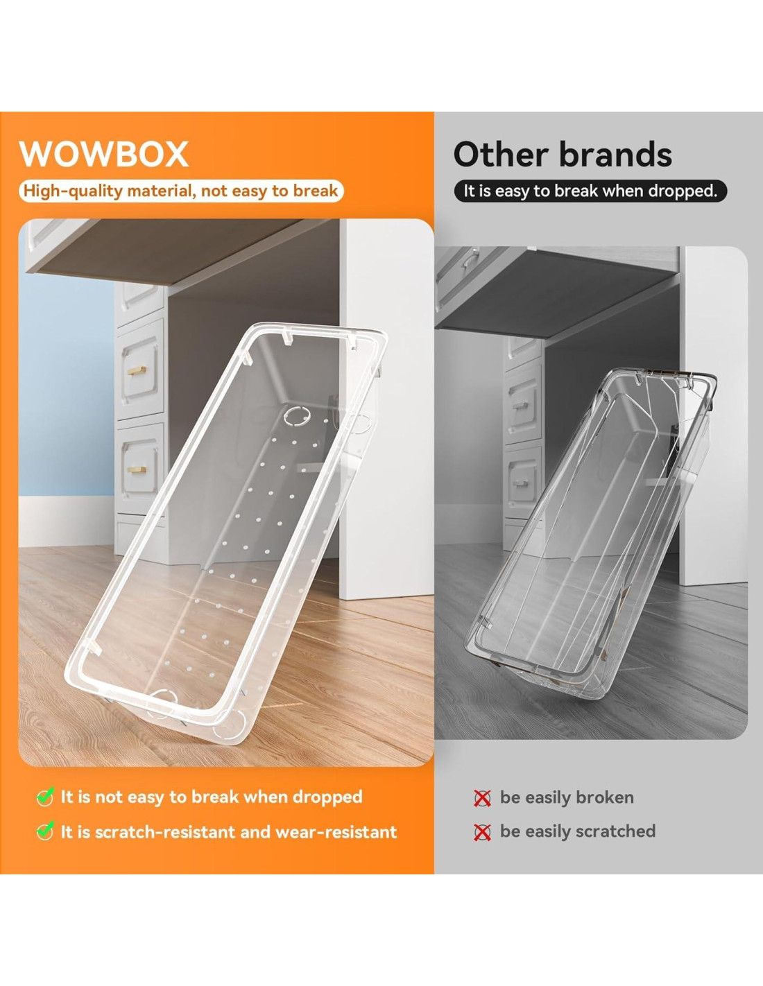 - Diseño apilable: Estos bins de almacenamiento transparentes se pueden apilar para usarlos uno al lado del otro y ayudar a maximizar tu espacio.