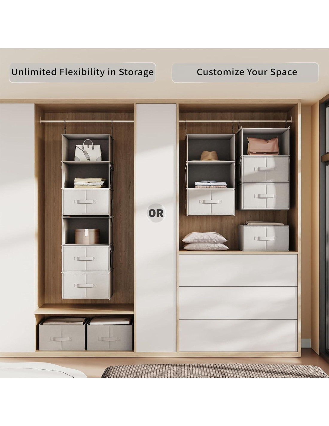 - ¿Por qué necesitas un organizador de closet colgante? La respuesta es muy simple: Nuestro organizador de closet colgante con cajones te ayudará a simplificar tu vida. Es agradable acceder a todo en tu armario. Nuestro organizador de closet hace posible que puedas ver y encontrar fácilmente tu ropa, mantas, gafas de sol, sombreros, etc. Sentirás un suspiro de paz y alivio con nuestro organizador de almacenamiento colgante.