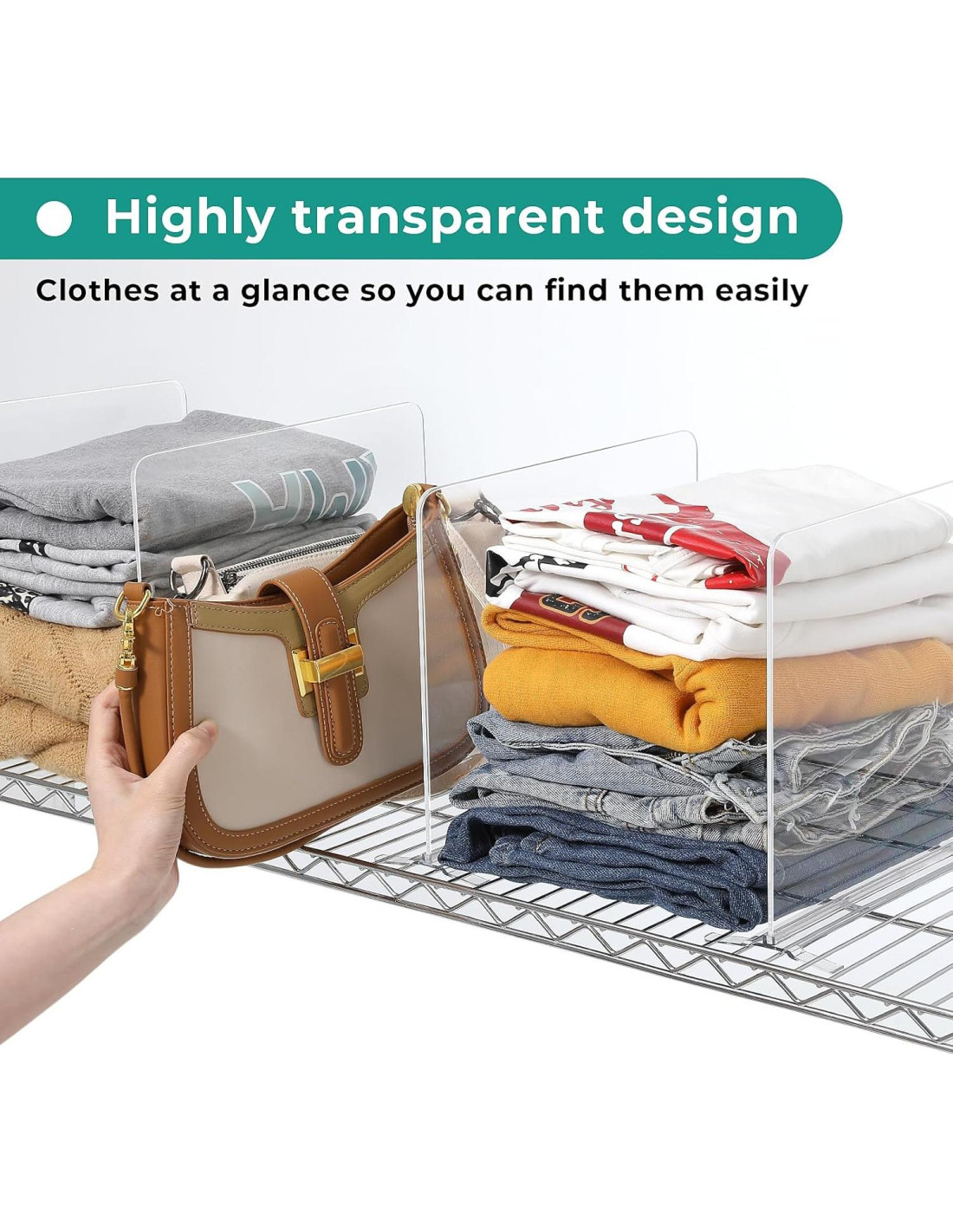 - Mantén Tu Closet Organizado: El diseño de espacio cerrado en cada divisor de closet evita que los artículos se derramen. Usar nuestro divisor de estante de closet acrílico es una solución asequible, fácil y genial para mejorar tu espacio en minutos. Cada divisor de estante mide 28 cm de ancho por 22.4 cm de alto. Si tienes alguna pregunta durante el uso, háznoslo saber y siempre estamos disponibles para ayudarte.