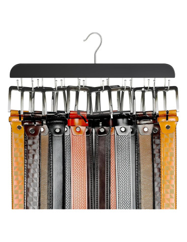 - Utilización del Espacio Optimizada: Cada perchero viene con 14 ganchos, cada uno capaz de sostener 3 cinturones. puedes almacenar ordenadamente hasta 42 cinturones. El innovador diseño rotativo maximiza el espacio del closet, manteniendo tus accesorios organizados, libres de desorden y tu vestuario luciendo ordenado.