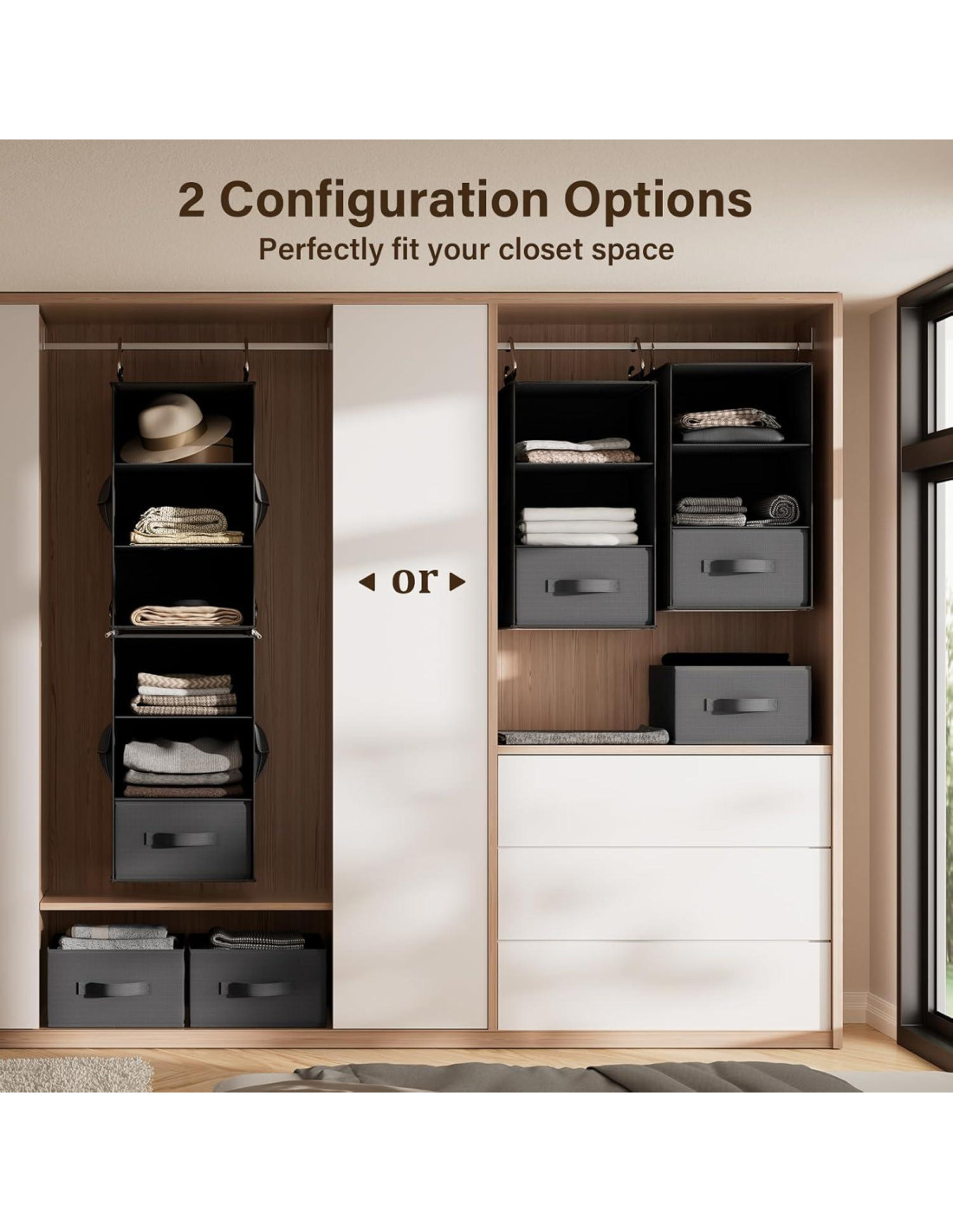 - Montaje Fácil y Flexible: El organizador colgante de 6 estantes cuenta con 2 unidades separables, cada una con 3 estantes para almacenamiento. Simplemente conecta las unidades de estante colgante del closet juntas o sepáralas usando la cremallera integrada para adaptarse perfectamente a tu espacio de closet disponible.