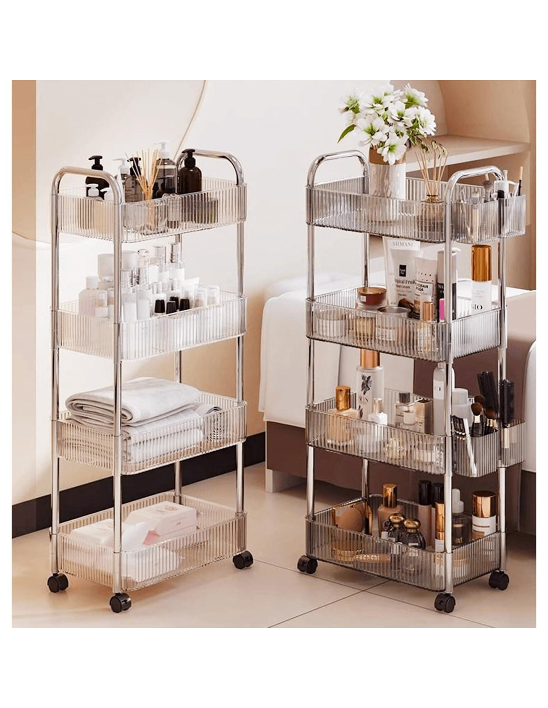 - Uso Multifuncional Puedes usarlo para almacenar artículos de uso diario, bocadillos, condimentos, artículos de tocador, libros y otras cosas. Mejora la limpieza del hogar, haz un uso razonable de él y ahorra espacio. No es solo un carro, se puede ajustar a 2, 3 o 4 estantes después de quitar las ruedas.