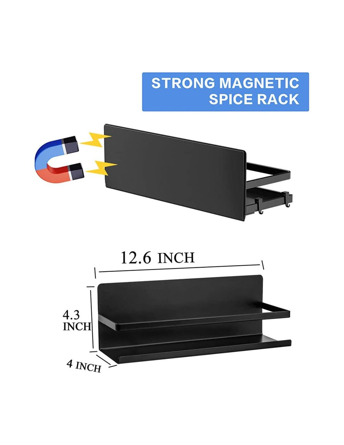 - Recibirás 2 estantes magnéticos para especias de refrigerador + 8 ganchos removibles. Tamaño del estante magnético: 31.8 cm L X 10.2 cm W X 10.9 cm H.