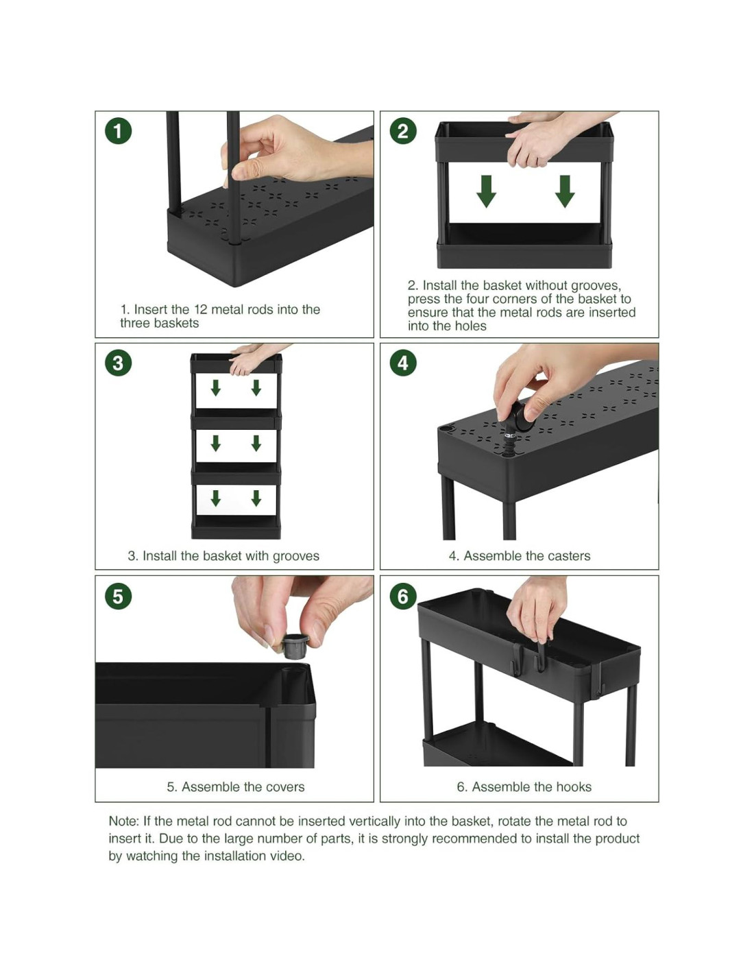 LEHOM es una marca con rica experiencia en almacenamiento para el hogar, y tenemos una profunda comprensión de los desafíos que enfrentan los espacios de vida pequeños. "Visitamos diferentes hogares y encontramos que muchas personas sienten que tienen un espacio de vida pequeño, pero de hecho el problema a veces no es sobre el tamaño de la habitación, sino más sobre cómo las personas utilizan el espacio." Si tu habitación es limitada pero tiene muchas cosas, aprende a usar cada rincón y cada pulgada de tu hogar de manera inteligente. Como tu cocina, un vacío en tu lavandería, o un espacio abierto en tu balcón. Si es así, este carrito rodante delgado y asequible de LEHOM es ideal para crear más espacio para tu vida cotidiana en un espacio limitado. 4 ruedas duraderas hacen que el carrito de almacenamiento sea suave y conveniente para sacar y meter. Di adiós al agua retenida durante su uso. 6 ganchos laterales proporcionan más espacios para tu almacenamiento. Estructura metálica resistente soporta una capacidad de aproximadamente 4.5kg para cada cesta.