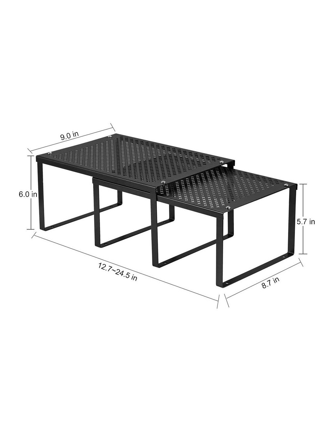 - Expandible y Apilable: Coloca los estantes apilados, anidados o uno al lado del otro para crear espacio extra para almacenamiento, perfecto para satisfacer tus diferentes necesidades.