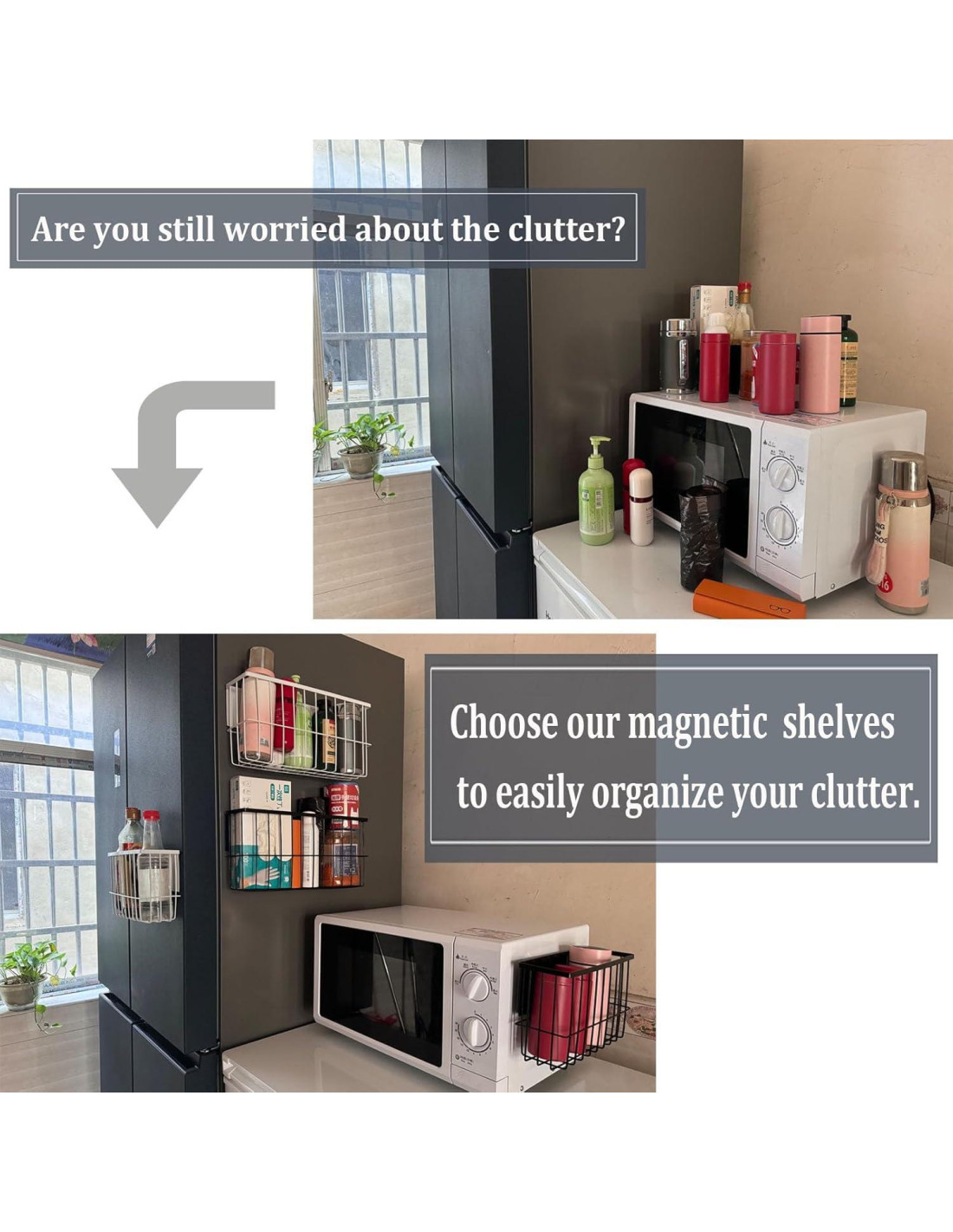 - ORGANIZADOR DE GESTIÓN: Los estantes magnéticos para refrigerador adoptan un diseño hueco, que no acumula agua y puede soportar hasta 4.54 kilogramos (10 libras), y puede acomodar fácilmente muchos artículos. Digamos adiós al espacio desordenado y bienvenido a una vida ordenada