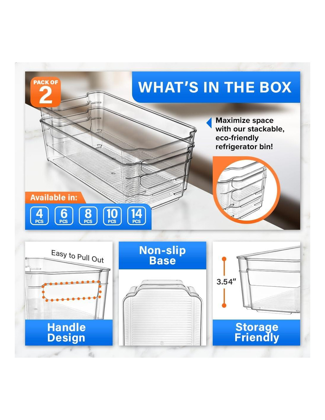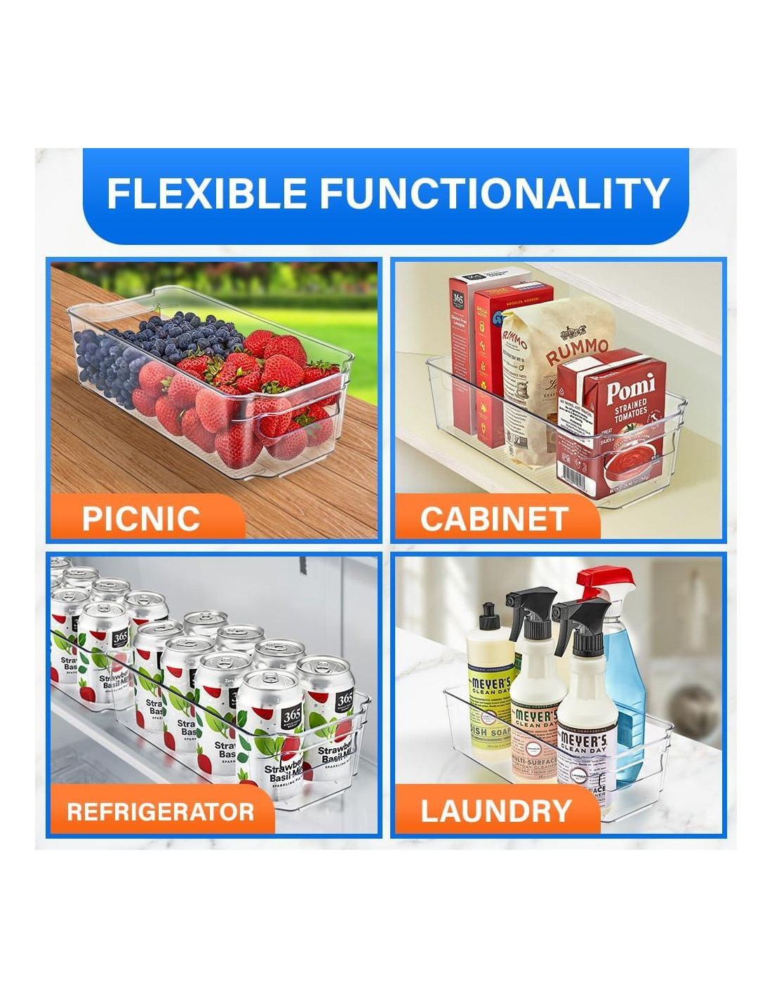 - Maximiza tu espacio con nuestros bins organizadores de despensa de plástico claro, perfectos para cocinas, refrigeradores, gabinetes y encimeras; ¡acceso fácil a tus bocadillos e ingredientes favoritos!