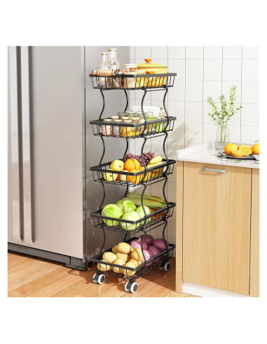- Canasta de Almacenamiento Apilable: Cada capa de las canastas de frutas se puede usar por sí sola o apilarse, esto ahorrará tu valioso espacio; Perfecto para almacenamiento y exhibición, suficiente para frutas, verduras, toallas, juguetes de niños, comida, snacks, suministros de manualidades, y mucho más. Tamaño: 37.1 cm L x 22.9 cm W x 112.2 cm H