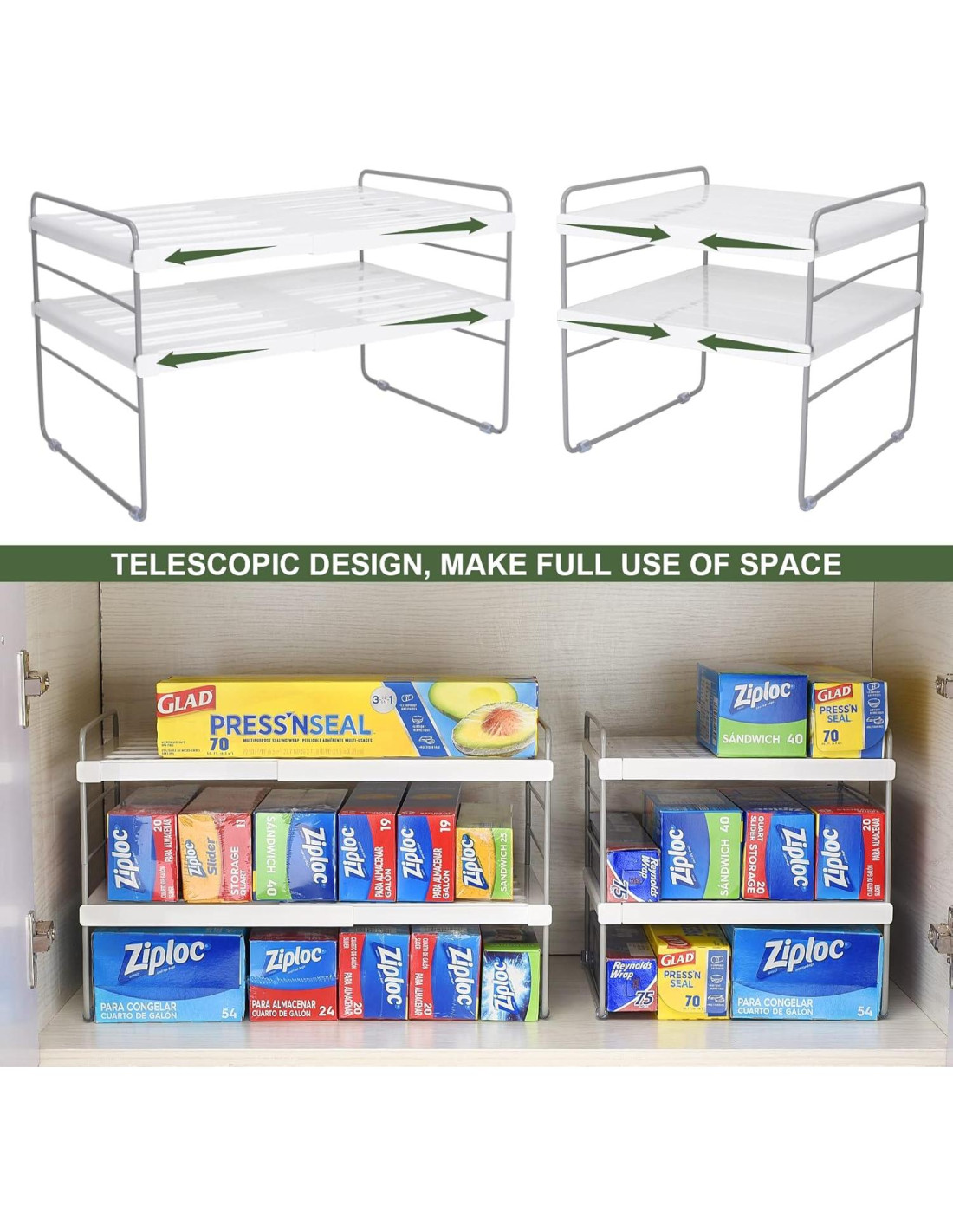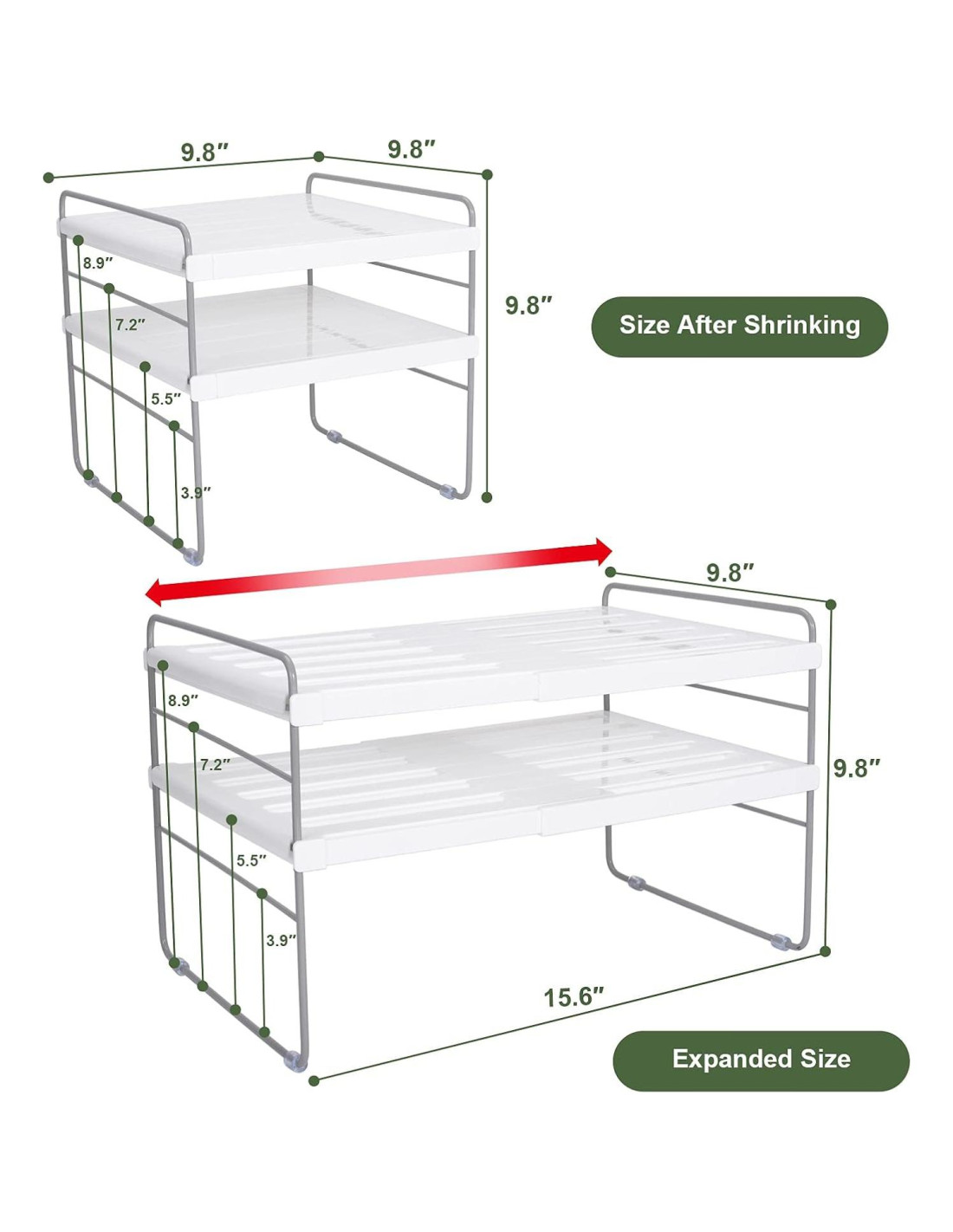 - PROPÓSITOS VERSÁTILES Y ELECCIÓN CONFIABLE: Este estante de gabinete de cocina es ideal para usarlos en dormitorios, debajo del fregadero de la cocina y el baño, despensa, mostrador, armarios y alacenas, incluso en el refrigerador, etc. También se puede usar como almacenamiento para camping o RV. Puedes almacenar tus especias en botellas, latas, frascos, artículos de tocador, utensilios de limpieza y cocina. Ofrecemos una política de devolución fácil de 180 días y una garantía de satisfacción del 100%. Estaremos encantados de ayudarte con cualquier problema o dificultad que encuentres.