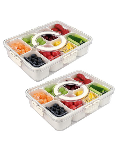 - Compartimentos Personalizables: Cuenta con 8 divisores removibles en una bandeja de 29.0 cm x 22.1 cm x 7.1 cm con tapa transparente - perfecto para organizar bocadillos, verduras o charcutería mientras mantiene los sabores separados.