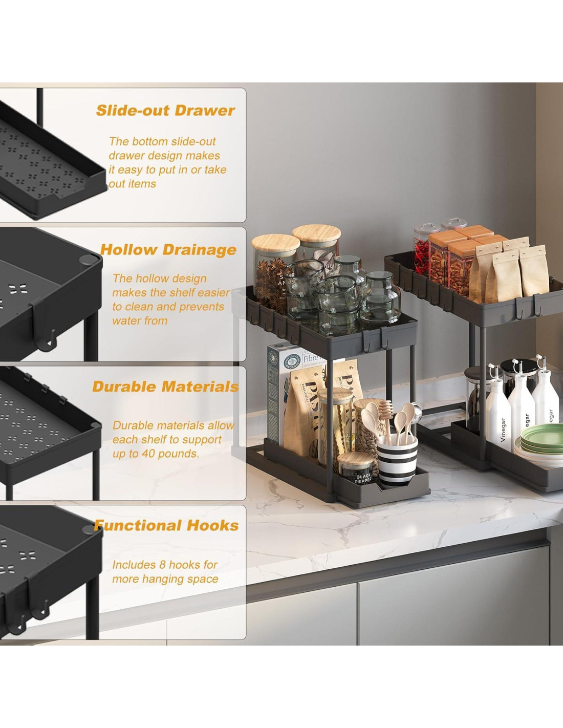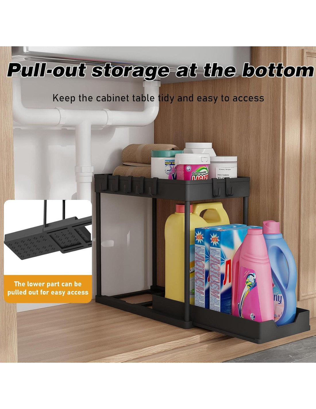 - Nombre del producto: Paquete de 2 Organizadores de Almacenamiento Extraíbles Multiusos, Organizadores y Almacenamiento Bajo el Fregadero para Baño y Cocina, Organizadores y Almacenamiento Bajo el Gabinete, 32.5 cm, Negro