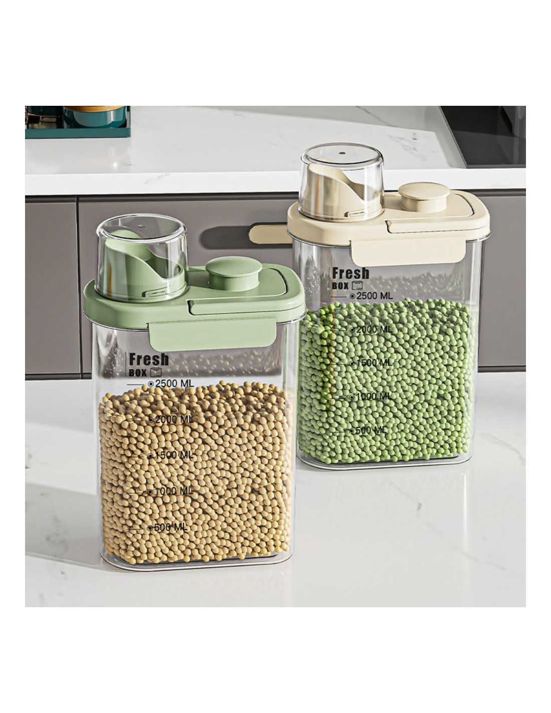 Komost 85oz / 2.5L Recipiente de Almacenamiento de Alimentos Hermético con Pico Vertedor y Taza Medidora para Cereal, Harina y Granos - Dispensador de Plástico Libre de BPA para Organización de Despensa Sello Hermético: Diseñado con un sello hermético, estos recipientes de alimentos mantienen tus cereales, arroz, granos y otros alimentos secos frescos y libres de humedad y otros contaminantes. Esto asegura que tu comida se mantenga deliciosa y nutritiva por más tiempo. Gran Capacidad: Con un diseño espacioso, estos dispensadores proporcionan amplio espacio de almacenamiento para grandes cantidades de alimentos. Ya sea que estés abasteciéndote de cereal para la semana o almacenando múltiples tipos de granos, estos recipientes pueden satisfacer tus necesidades. Sistema de Dispensación Conveniente: Equipados con un sistema de dispensación de funcionamiento suave, estos dispensadores facilitan la porción perfecta de cereal, arroz o granos cada vez. Un diseño de asa también facilita la colocación y el transporte. Diseño Transparente: La construcción clara de estos recipientes te permite identificar rápidamente el contenido, por lo que puedes ver fácilmente lo que hay dentro sin tener que abrirlos. Esto ayuda a mantener tu cocina organizada y libre de desorden. Construcción Duradera: Hechos de materiales de alta calidad, estos dispensadores están diseñados para durar. Son resistentes, fáciles de limpiar y están diseñados para soportar el uso diario en tu cocina. Ya sea que estés almacenando productos secos o esenciales de despensa, estos dispensadores son una opción inteligente para organizar tu cocina.