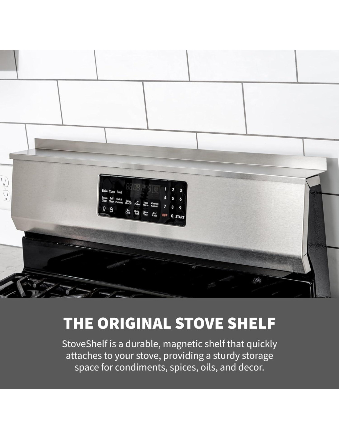 - EL ESTANTE ORIGINAL PARA ESTUFA: ¡Dale a tu cocina un aspecto limpio y ordenado! StoveShelf es un estante magnético duradero que se adhiere rápidamente a tu estufa, proporcionando un espacio de almacenamiento resistente para condimentos, especias, aceites y decoraciones