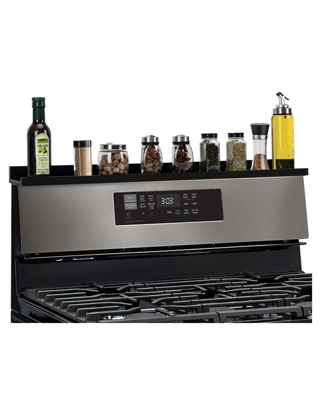 - PREVENIR QUE LOS ARTÍCULOS SE CAIGAN: Estante de especias sobre la estufa con un riel de protección para evitar que tus condimentos o especias se caigan sobre la estufa y mantener tu cocina limpia.