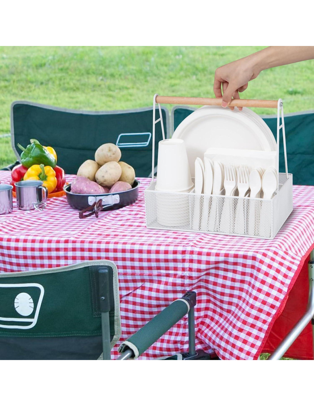 - [Caddy de Picnic para Platos y Utensilios] Este caddy de picnic tiene suficiente espacio para todas tus necesidades de camping/picnic, es una forma conveniente de poner platos de papel, cubiertos, tazas y servilletas en este caddy de picnic