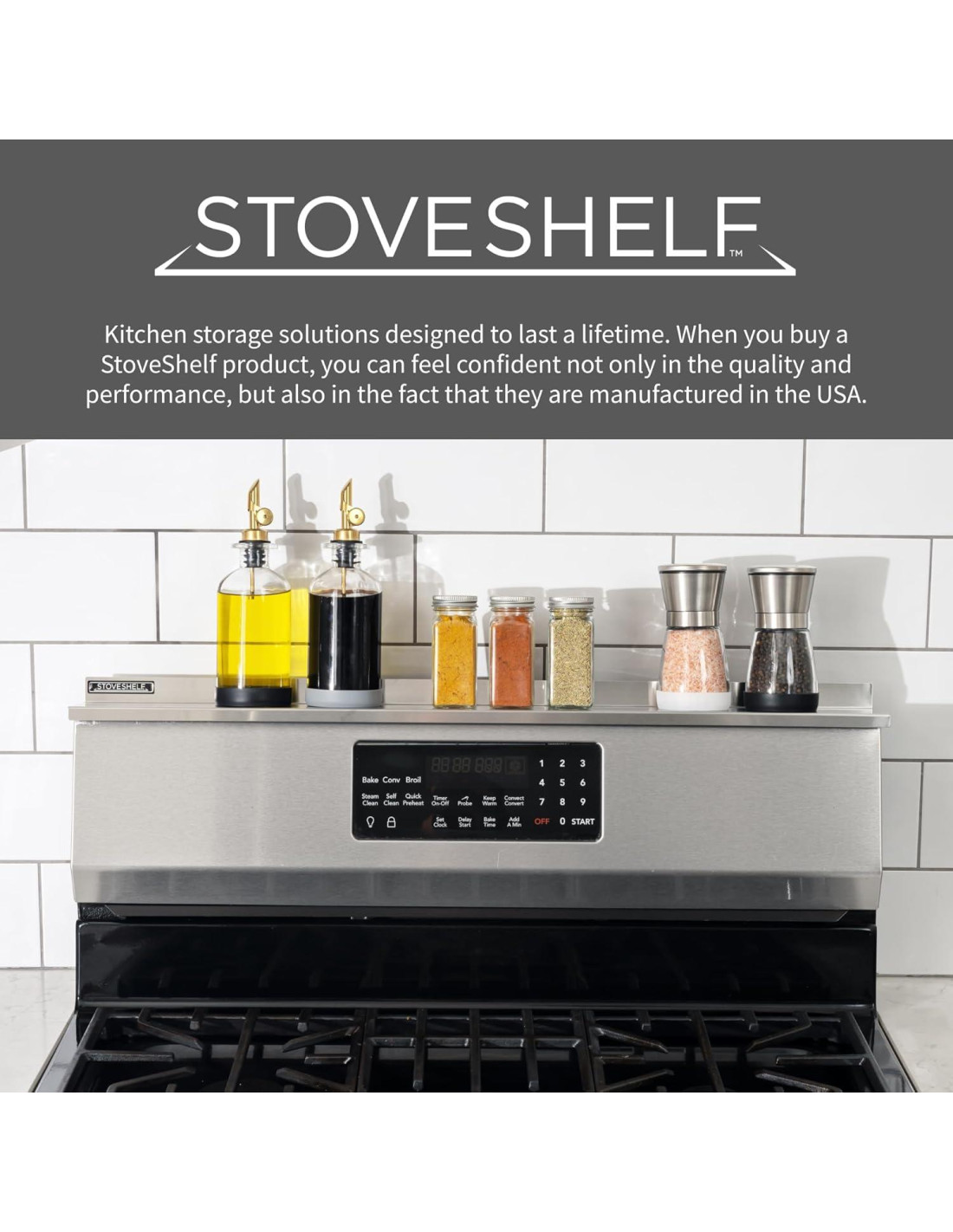- DISEÑADO PARA DURAR: Fabricado en EE. UU. con materiales de primera calidad, StoveShelf fue diseñado para una vida útil y el cuerpo de acero inoxidable resistirá la oxidación, olores, manchas y corrosión. Esta es una compra única de la que estarás encantado cada vez que pises tu cocina.
