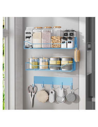 - Versátil y personalizable: Dependiendo de la disposición de tu entorno de cocina, puedes organizar tus especias según el orden de tus artículos de cocina con un juego de estantes magnéticos para especias.