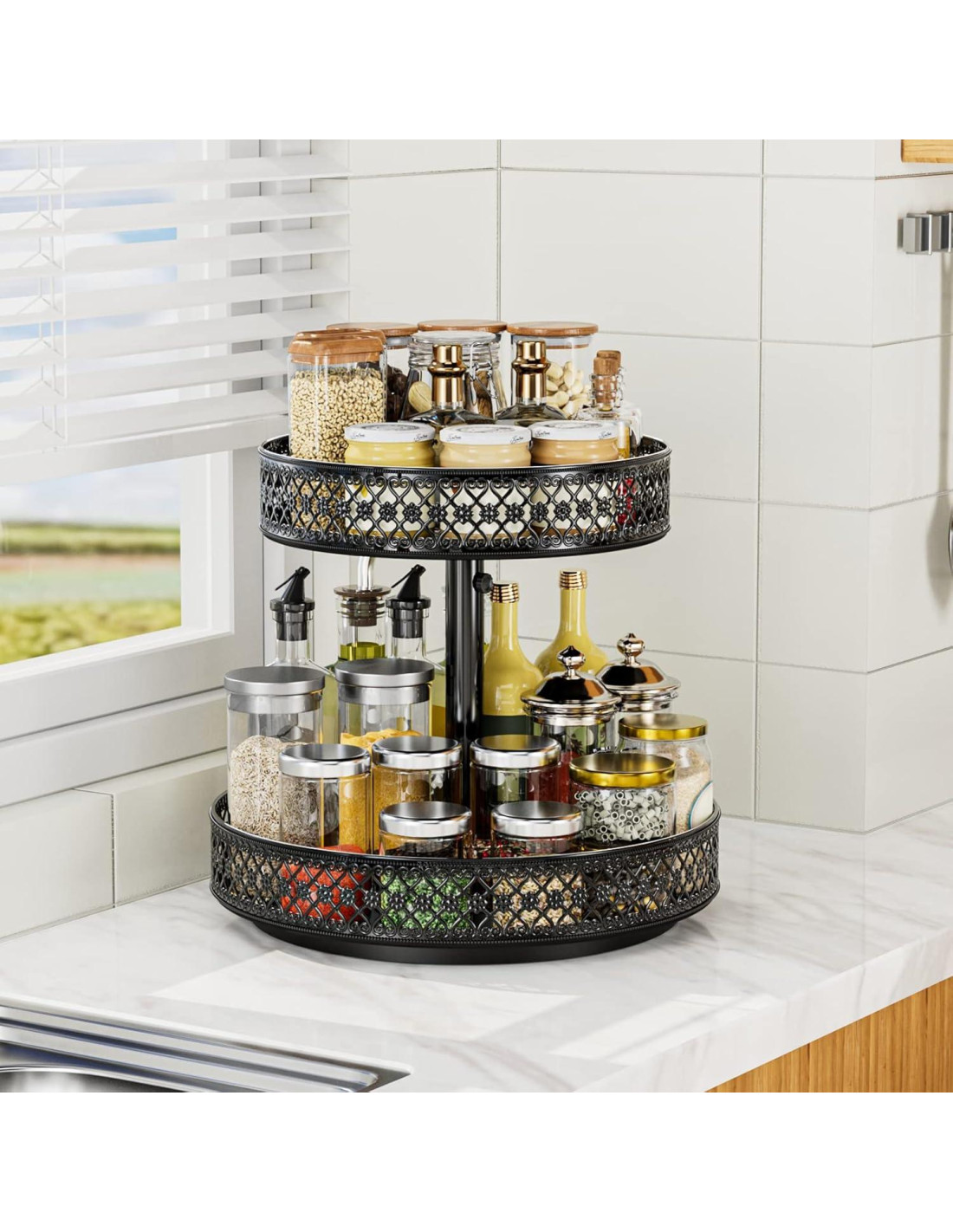 - Material de Metal Duradero: Este organizador giratorio de alta resistencia está hecho de metal de calidad resistente a la corrosión y al agua. Mucho más fuerte y duradero que el organizador giratorio de plástico. El recubrimiento resistente a la abrasión puede garantizar un uso prolongado y es fácil de limpiar.