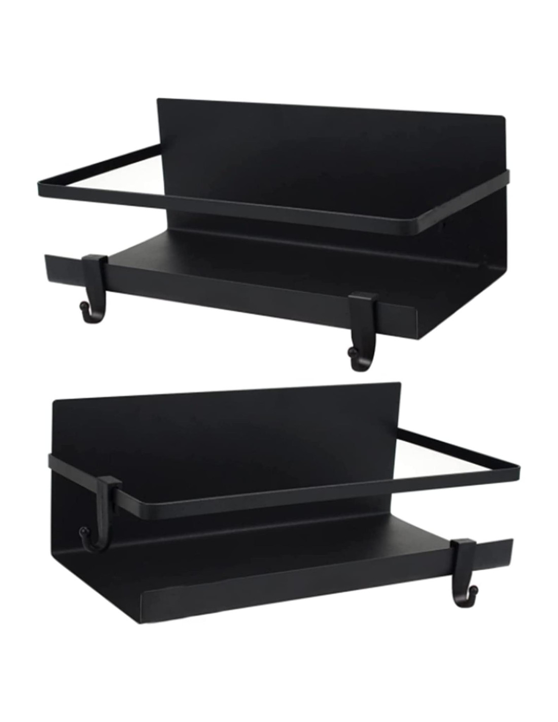 - [Bonificación]: El paquete de 2 estantes magnéticos para especias viene con 4 ganchos removibles que se pueden adjuntar al estante en el costado para colgar utensilios de cocina como toallas, manoplas, tijeras, tazas y cucharas medidoras, llaves, gafas de sol, etc., para un acceso rápido y fácil. Gran organizador de estantes para la organización del refrigerador, organizadores y almacenamiento de cocina.
