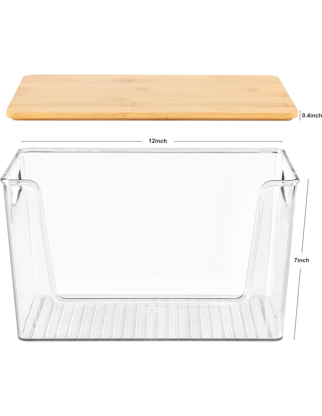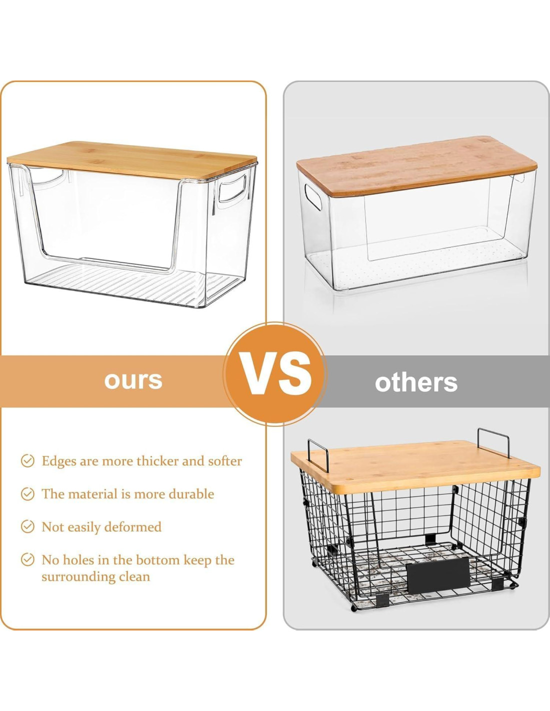 - Tapa de Bambú con Apertura Frontal: Este contenedor de almacenamiento cuenta con una conveniente apertura frontal y está cubierto con una tapa de bambú duradera. El diseño de la tapa permite un fácil acceso al contenido mientras agrega un toque de elegancia natural a su espacio.