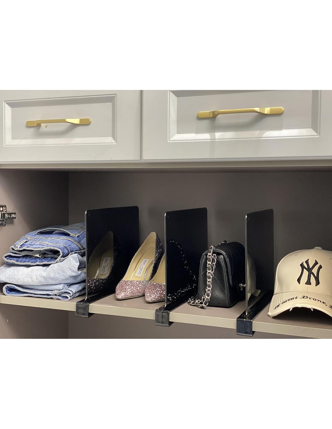 - ¿POR QUÉ ELEGIRNOS?: Hecho de acrílico de alta calidad que tiene mejor ductilidad, más ligero y más seguro que el vidrio, madera o divisores de closet de cromo, a diferencia de los divisores de estante de alambre de metal, nuestros divisores no tienen esquinas afiladas, no rasparán tus estantes. ¡Y no necesitas instalación con herramientas! ¡Simplemente se desliza directamente en tu estante!