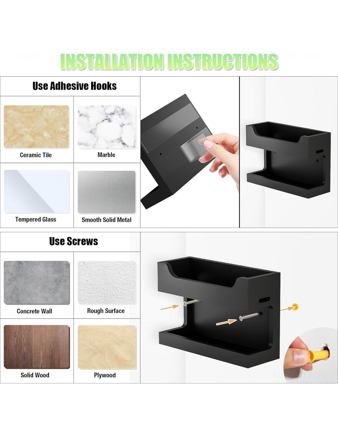 - [Instalación Sencilla] La instalación es muy fácil. Opta por montaje adhesivo o montaje con tornillos según tu preferencia.