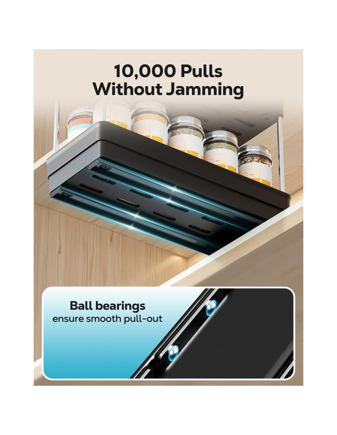 - Deslizamiento ultra suave - Los rodamientos de bolas de alta calidad aseguran más de 10,000 deslizamientos sin esfuerzo; no se atasca, aún puedes sacar rápidamente el estante de especias para agarrar lo que necesitas incluso cuando estás apurado cocinando.