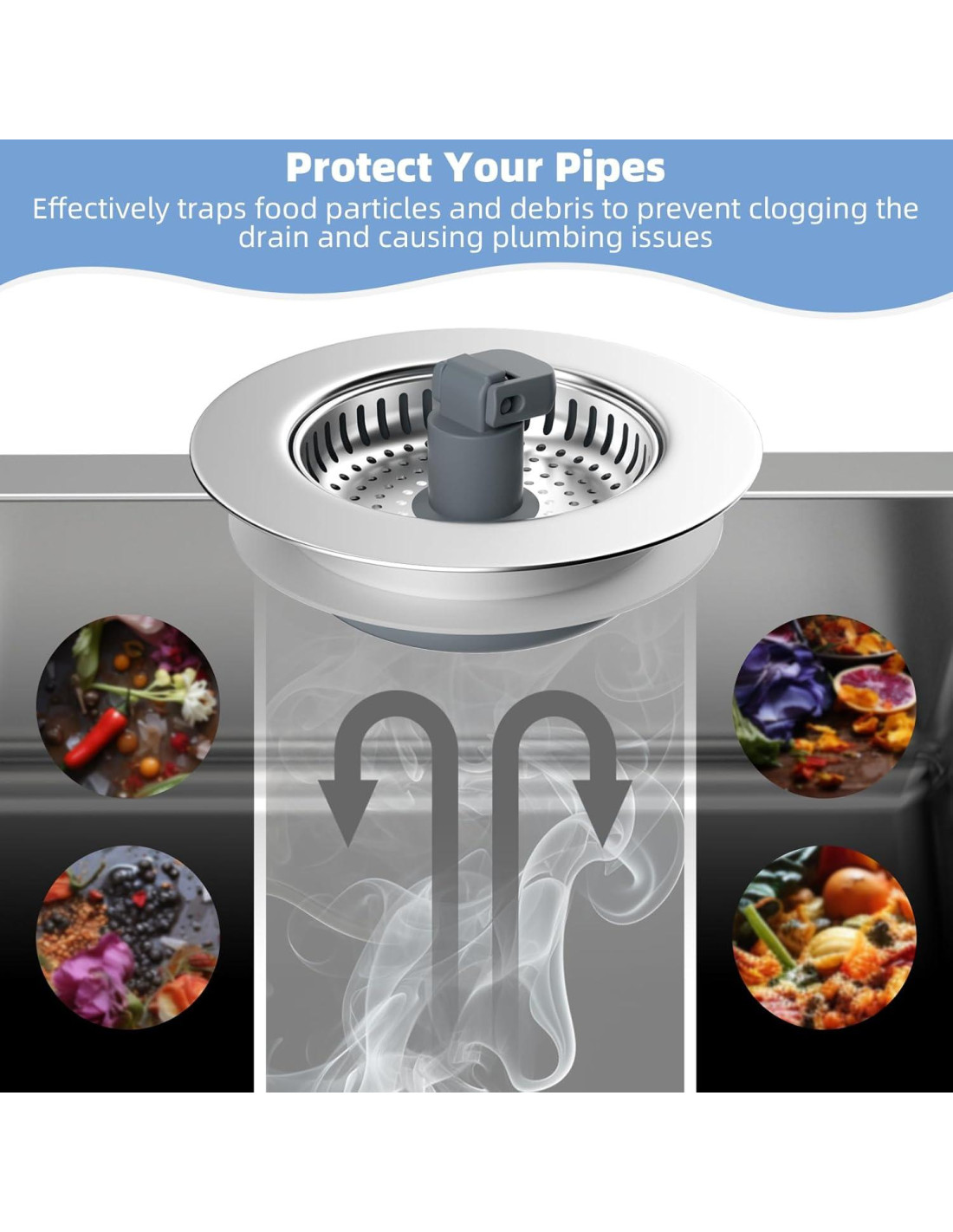 - [Diseño Multifuncional] Este filtro de fregadero integra almacenamiento de agua, filtrado y control de olores. Equipado con múltiples juntas de sellado, asegura un almacenamiento de agua sin fugas mientras bloquea eficazmente el olor del drenaje. También se puede utilizar como un reservorio de agua para limpiar y remojar. La cesta perforada facilita un filtrado eficiente de desechos de cocina sin obstruir el flujo de agua, previniendo bloqueos