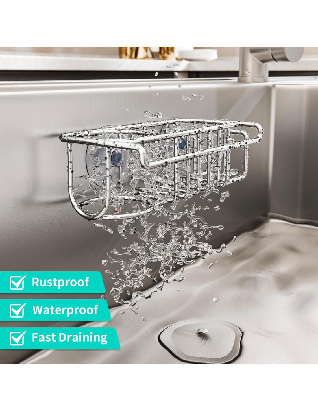 - [Antioxidante y a Prueba de Agua]: El soporte para esponjas de fregadero de cocina está hecho de acero inoxidable SUS 304 con una construcción sólida, no se oxidará, asegura calidad, el diseño permite que el agua drene, las esponjas y estropajos se secan rápidamente al aire.
