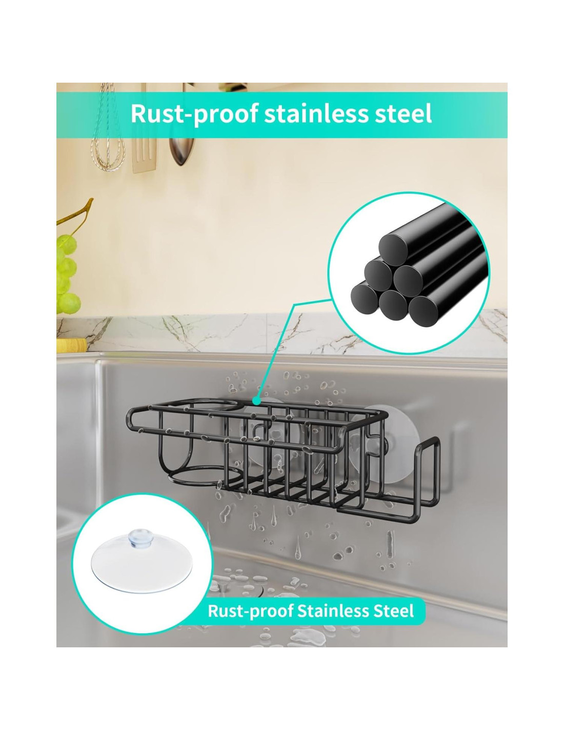 - [Antioxidante y a Prueba de Agua]: Nuestro soporte de esponja para fregadero de cocina está hecho de acero inoxidable SUS 304 con una construcción sólida, no se oxidará, asegura calidad, el diseño permite que el agua drene, las esponjas y estropajos se secan rápidamente al aire