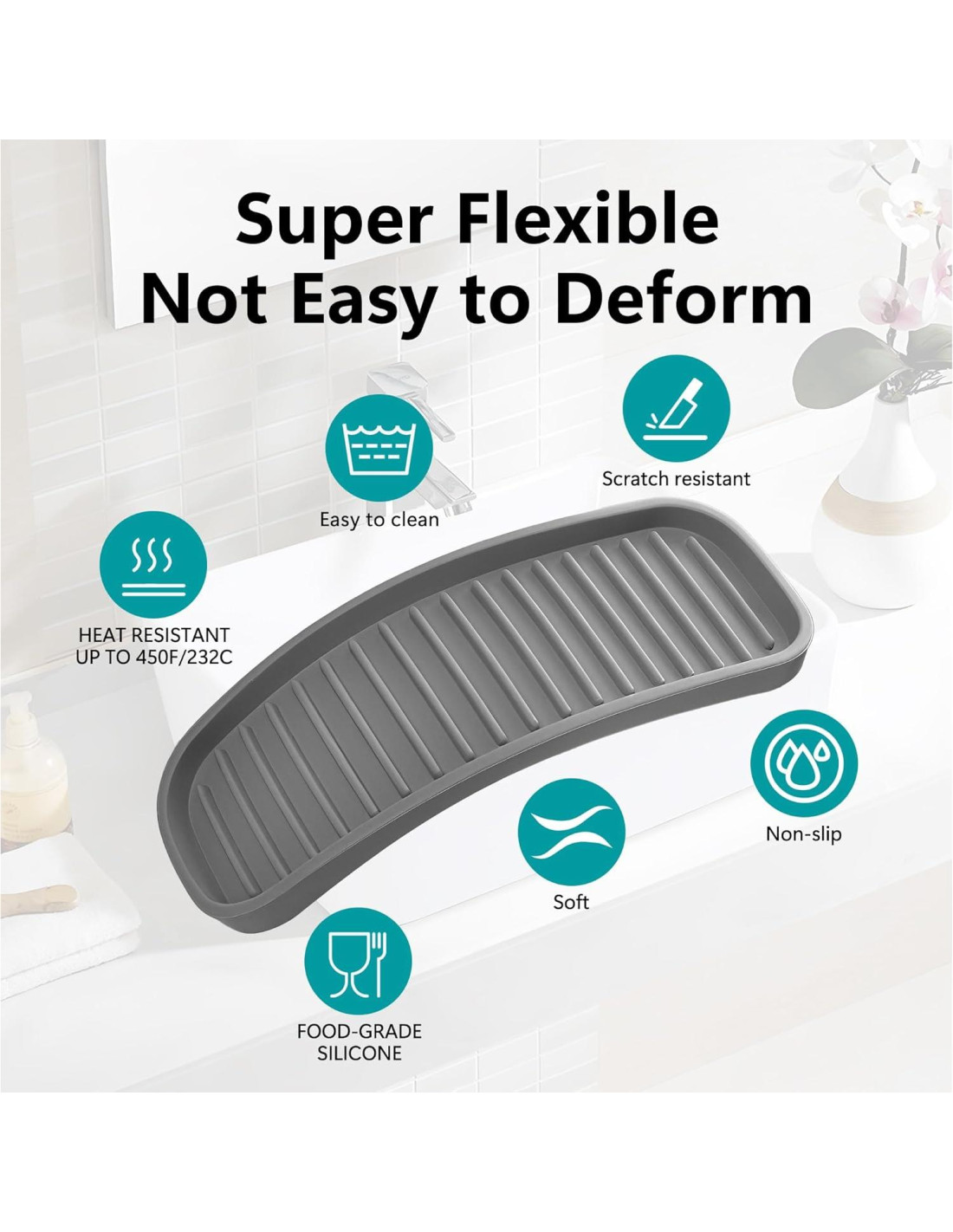 - Material de Silicona Premium - Nuestro organizador de fregadero de silicona está hecho de silicona flexible. Este organizador de fregadero es resistente al calor hasta 450F (232C), nuestro organizador de fregadero de cocina se puede usar de manera segura con utensilios de cocina calientes, herramientas de BBQ o herramientas de cabello calientes. Proteja sus encimeras y superficies del calor. Después de usar, simplemente lávelo con agua jabonosa tibia. O simplemente tírelo en el lavavajillas.